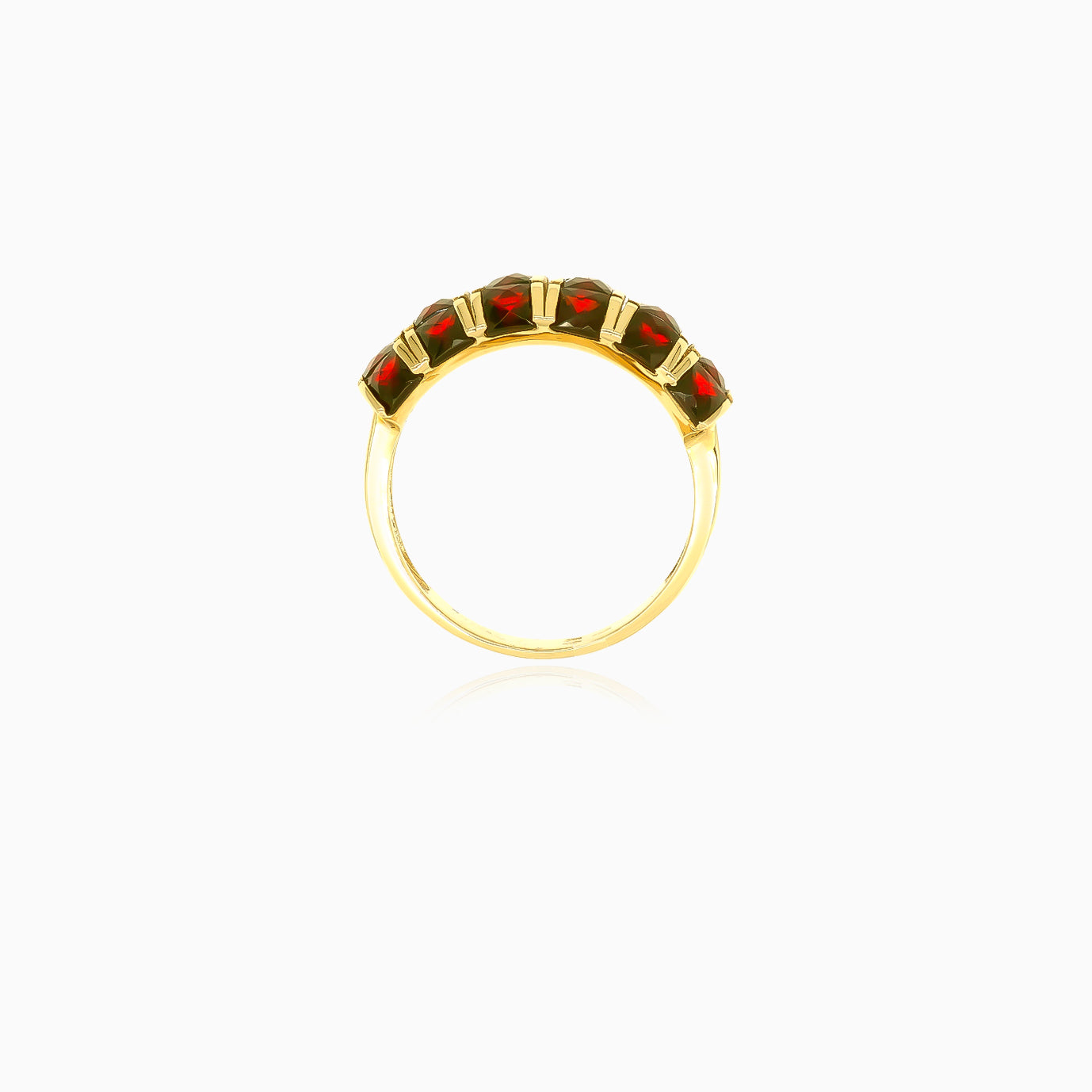 This elegant women's ring is crafted from 14kt yellow gold and features 10 stunning garnets in a square princess-cut. The channel setting highlights the deep red stones, offering a simple yet sophisticated design. Perfect for those who appreciate refined, timeless jewelry.