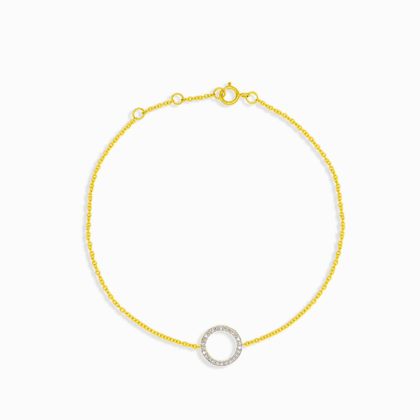 Adorn your wrist with elegance. This delicate diamond bracelet is expertly crafted in 14kt yellow and white gold, featuring brilliant-cut diamonds with a total weight of 0.09 ct embedded in intricate detailing. Diamonds are H color and SI1 clarity.