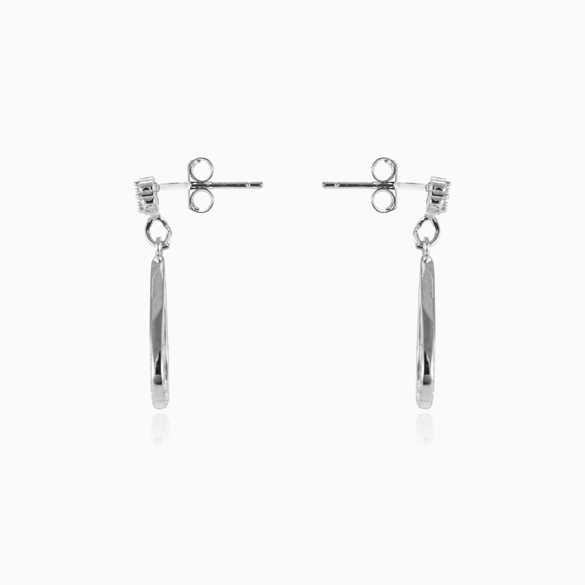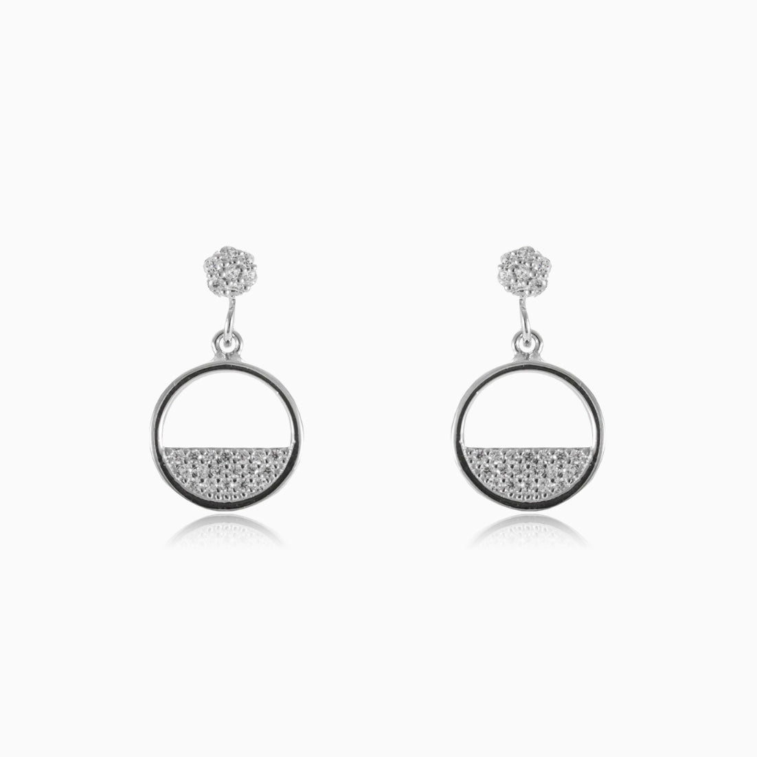 Unique and modern designed sterling silver earrings combined with pave set round cubic zirconia.
