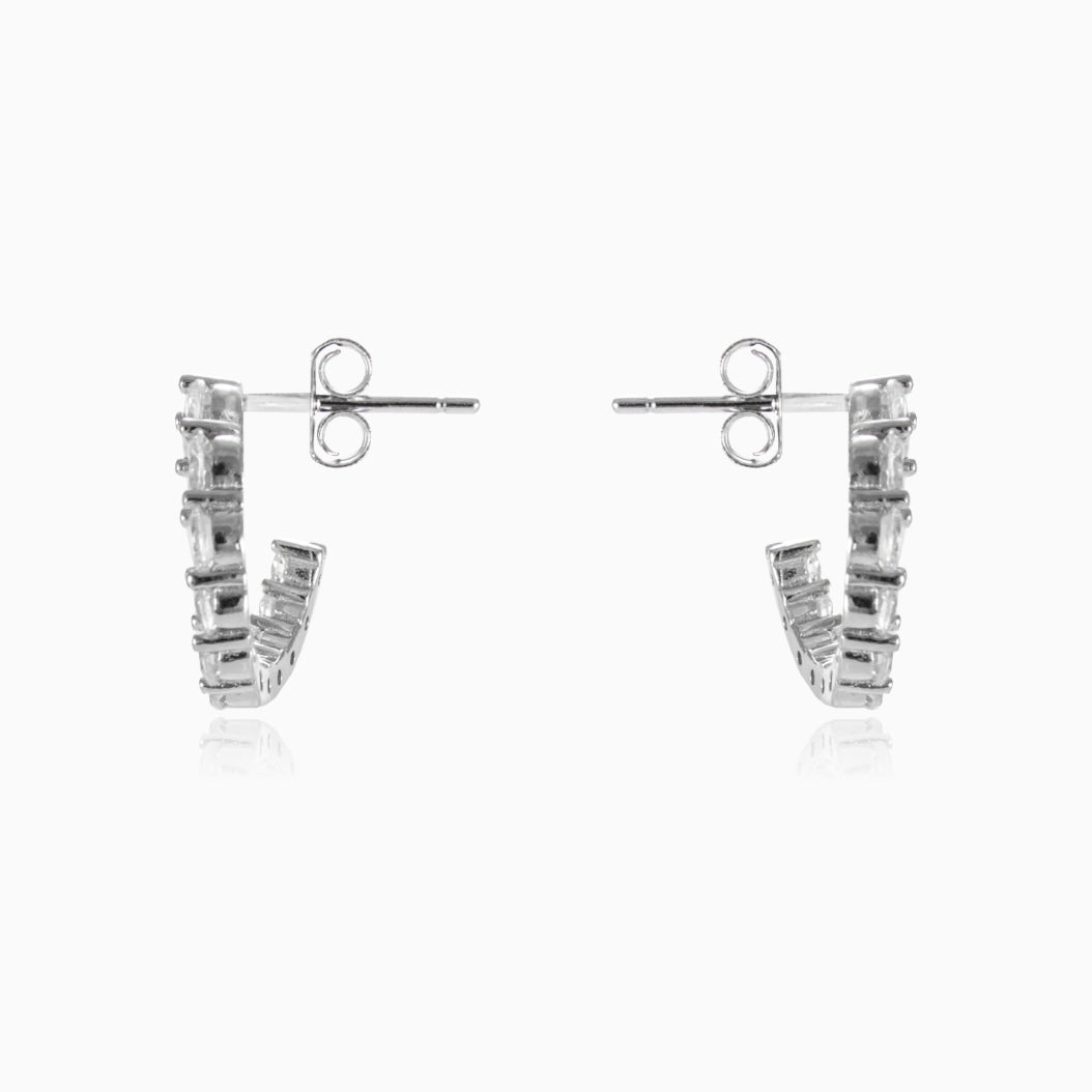 Modern and unique semi circle earrings decorated with big to small round cut cubic zirconia.