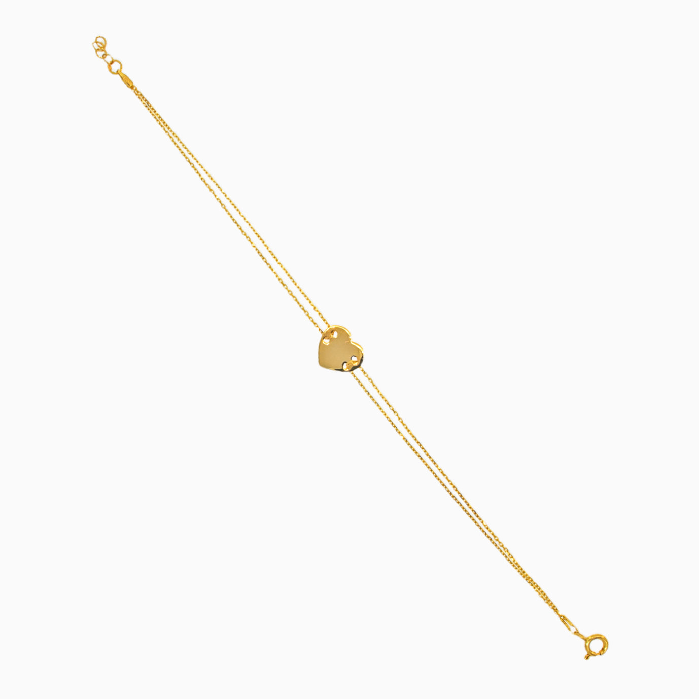 Pulsera de corazón de oro amarillo con doble cadena
