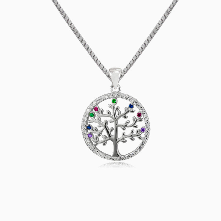 El colorido árbol de la vida está hecho de plata de ley y rodeado de circonia cúbica blanca, decorado con rubí sintético, zafiro, amatista y esmeralda de colores.