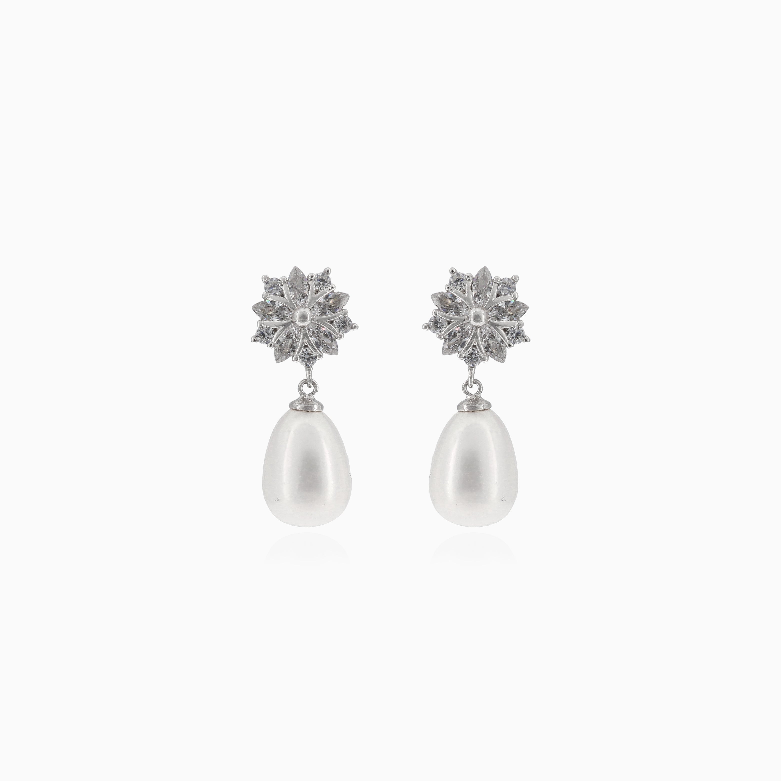 Realza tu conjunto con estos exquisitos pendientes de plata que presentan perlas lustrosas y deslumbrantes circonitas cúbicas, perfectos para añadir un toque de elegancia a cualquier ocasión.