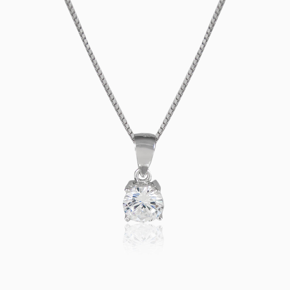 Circonita cúbica clásica con corte redondo, engastada en plata de ley y asegurada con cuatro garras.