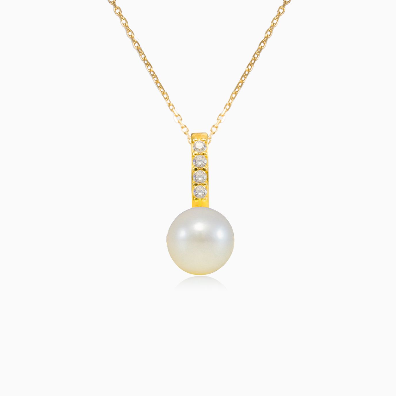 Colgante gota con perla destacada, fabricado en oro amarillo 14K y decorado con una línea de circonitas.