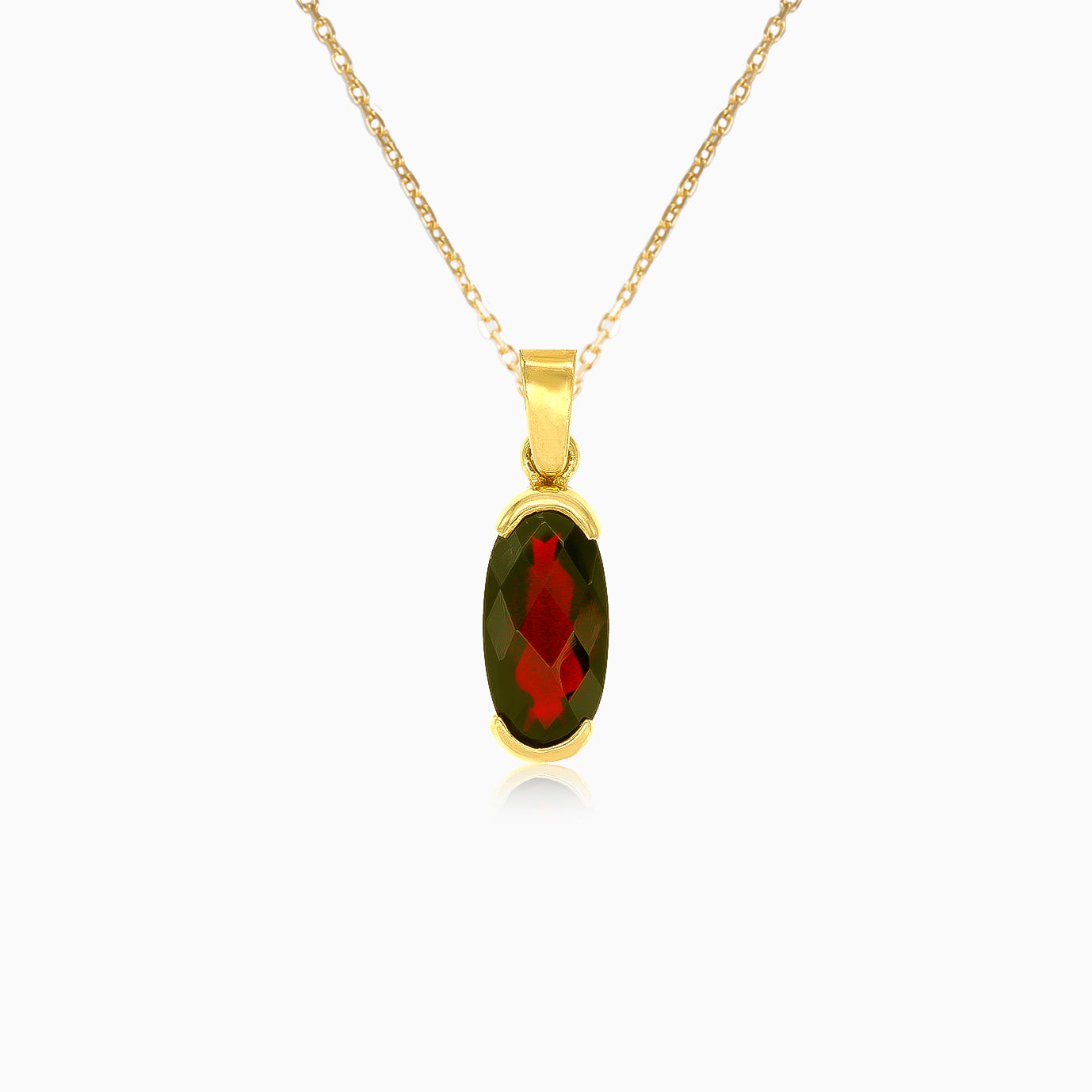 Eleva tu elegancia con este colgante de granate que presenta un impresionante corte escalonado ovalado fino. Fabricado en oro amarillo de 14 quilates con un seguro ajuste de barra, este colgante añade un toque de sofisticación a cualquier conjunto.