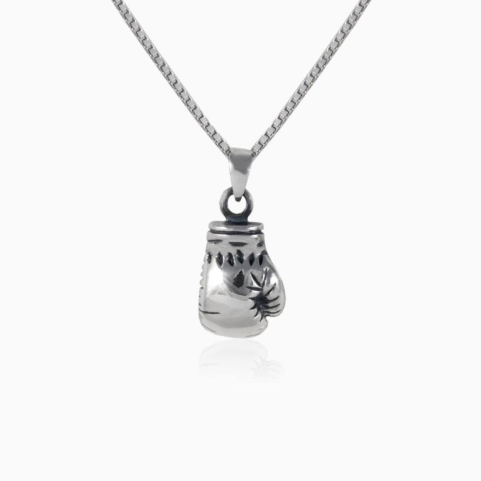 Péndant único hecho a mano en plata de ley con forma de guante de boxeo.