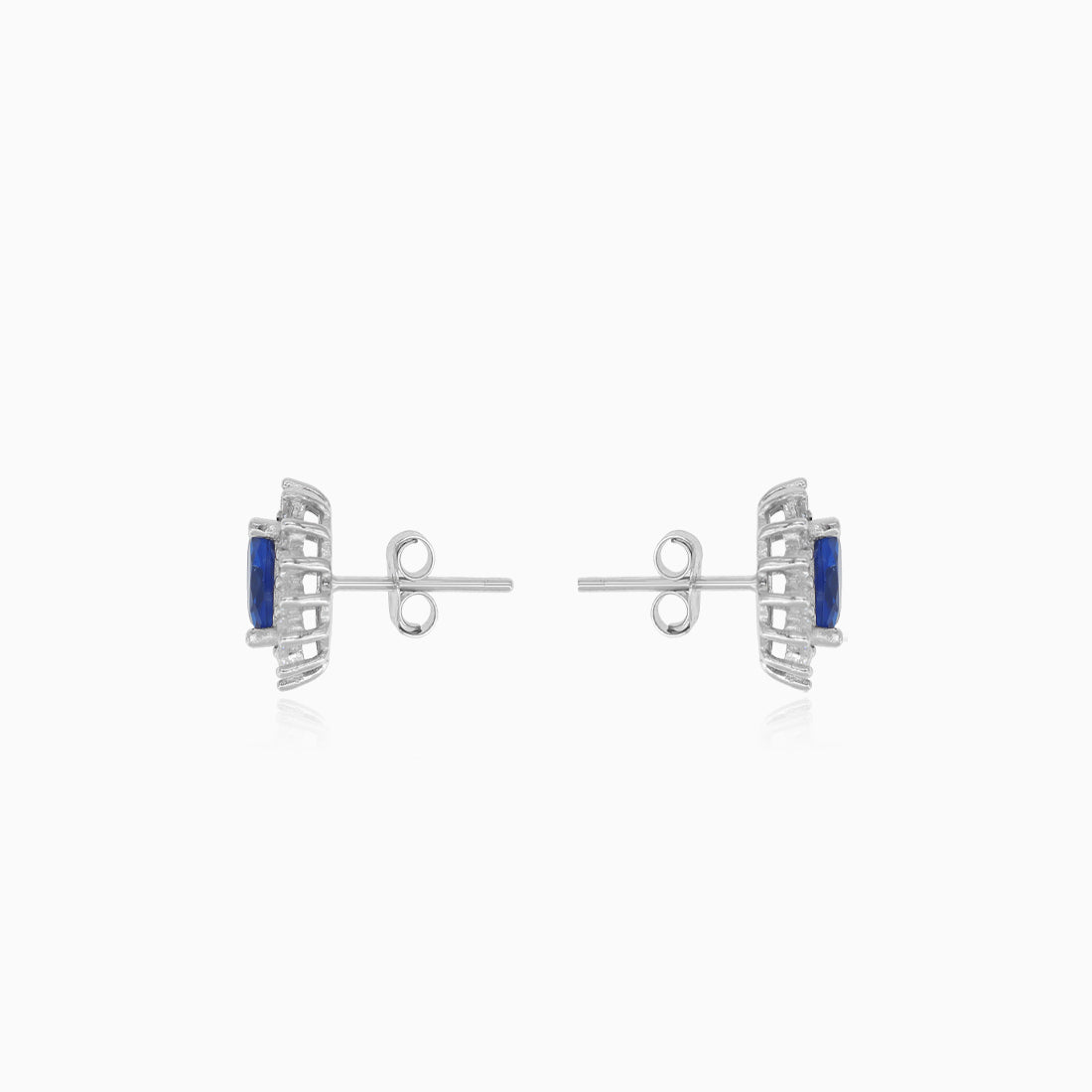 Pendientes de botón de halo en plata esterlina con zafiro