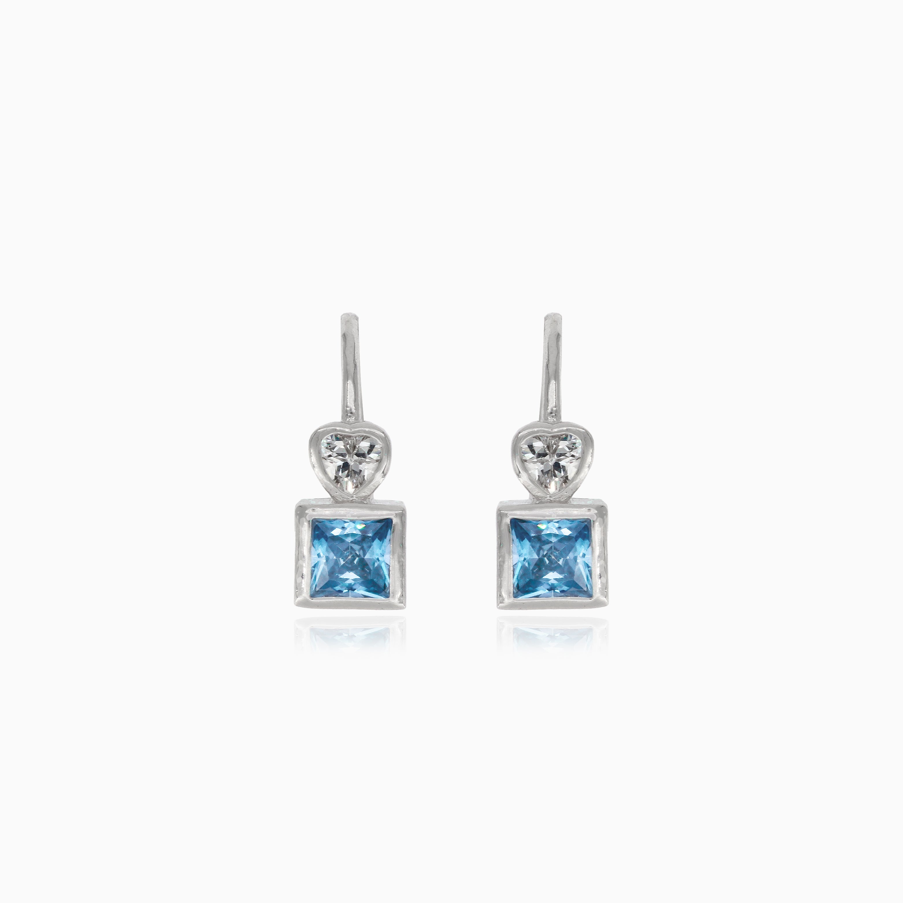 Pendientes de plata con topacio cuadrado y corazón de circonita cúbica