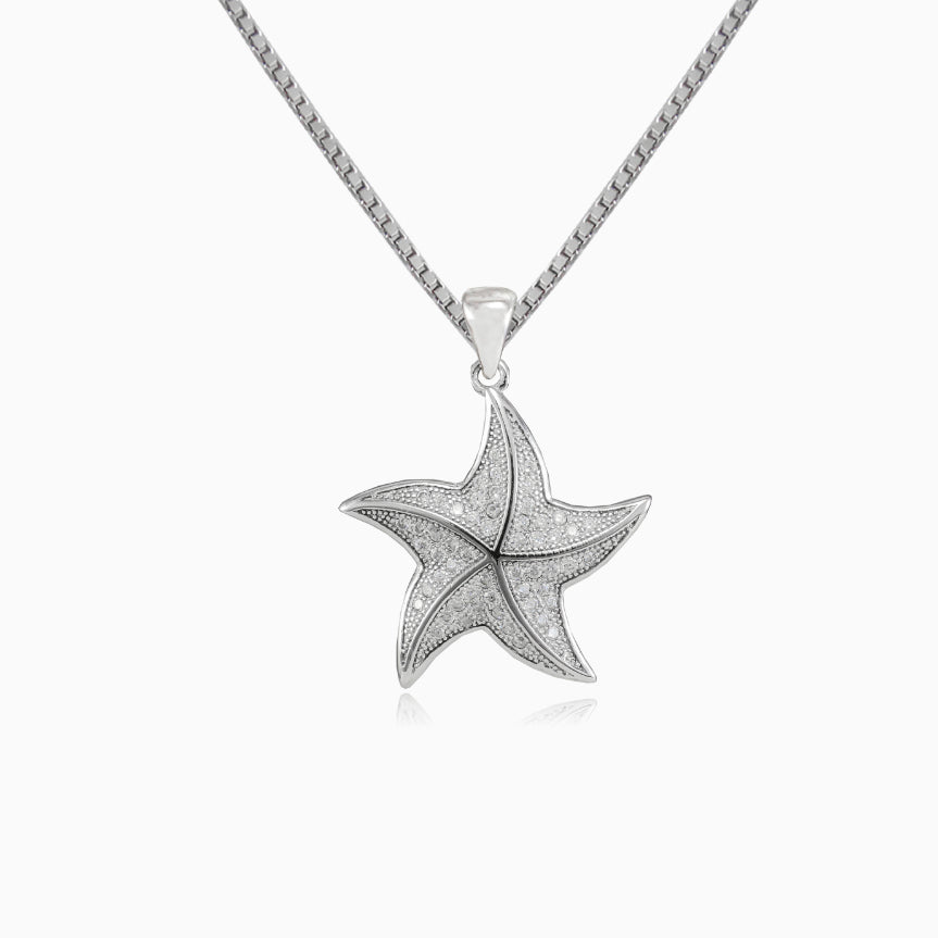 Péndulo de plata esterlina en forma de estrella de mar y decorado con circonitas cúbicas.