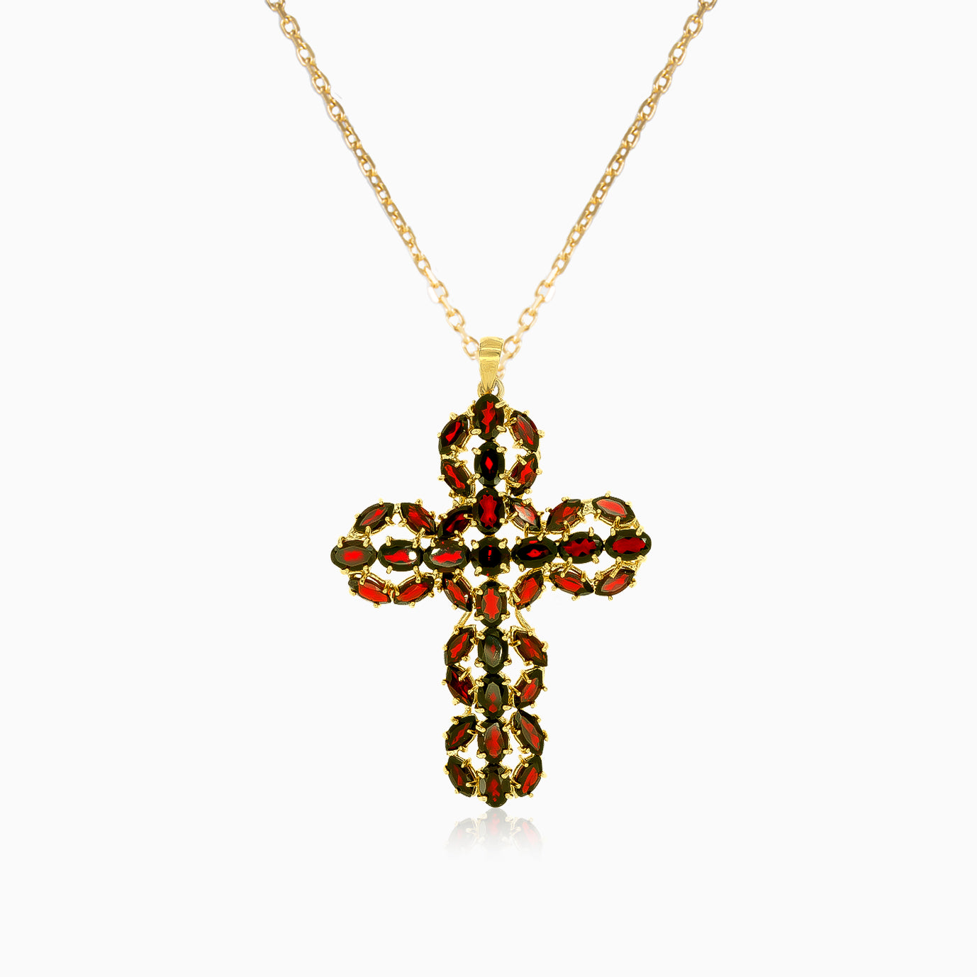Colgante cruz elegante de granate y oro