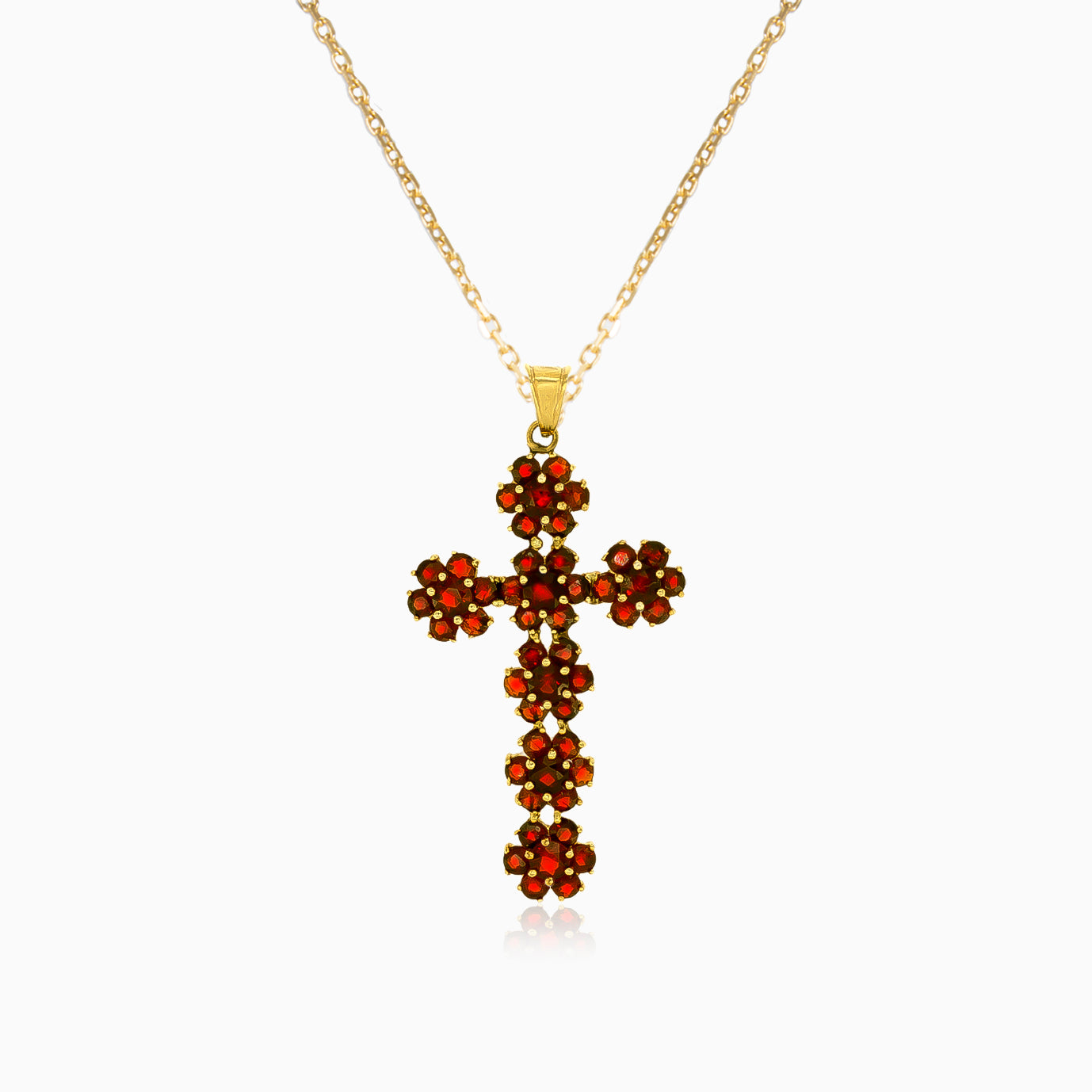 Cruz fina con granate talla escalonada