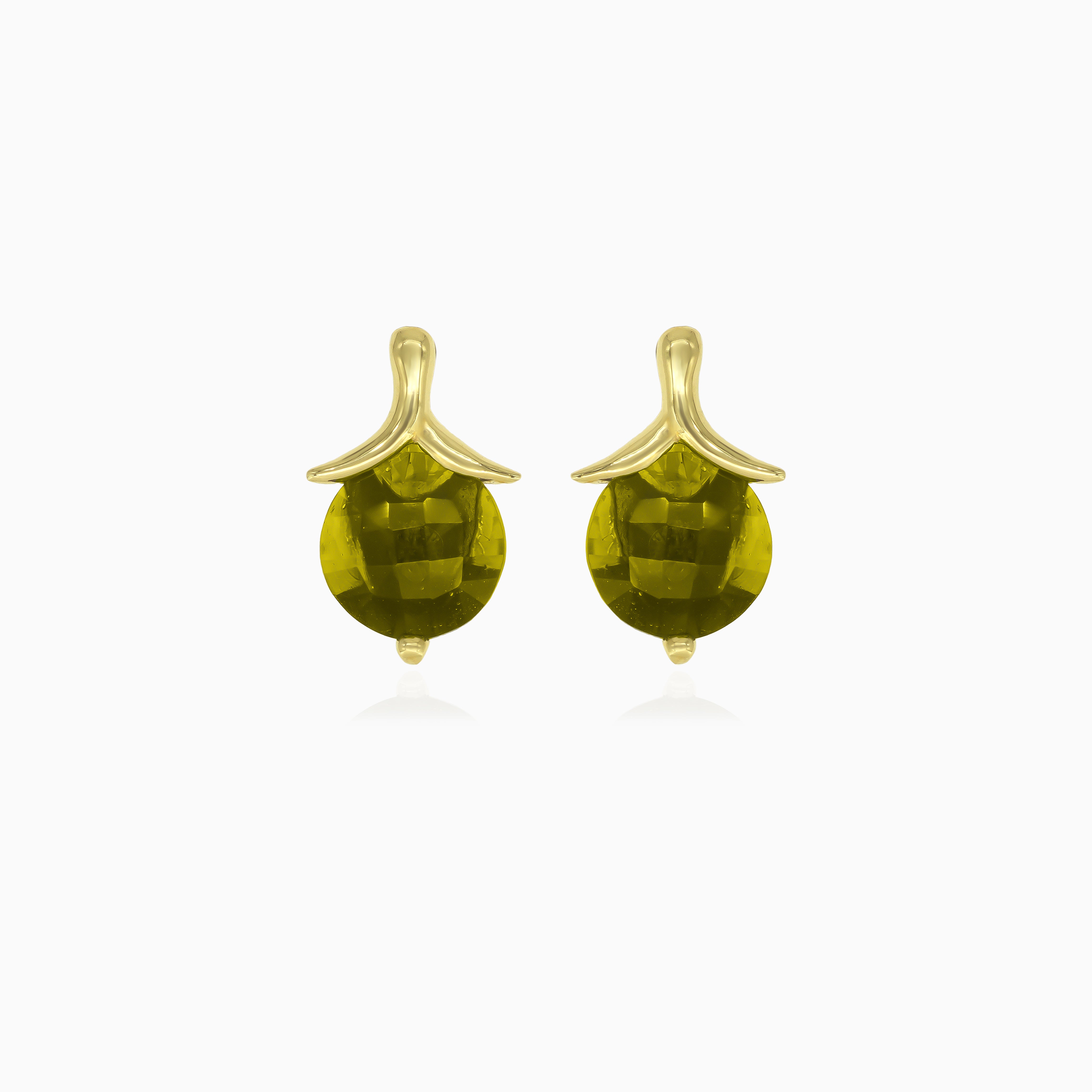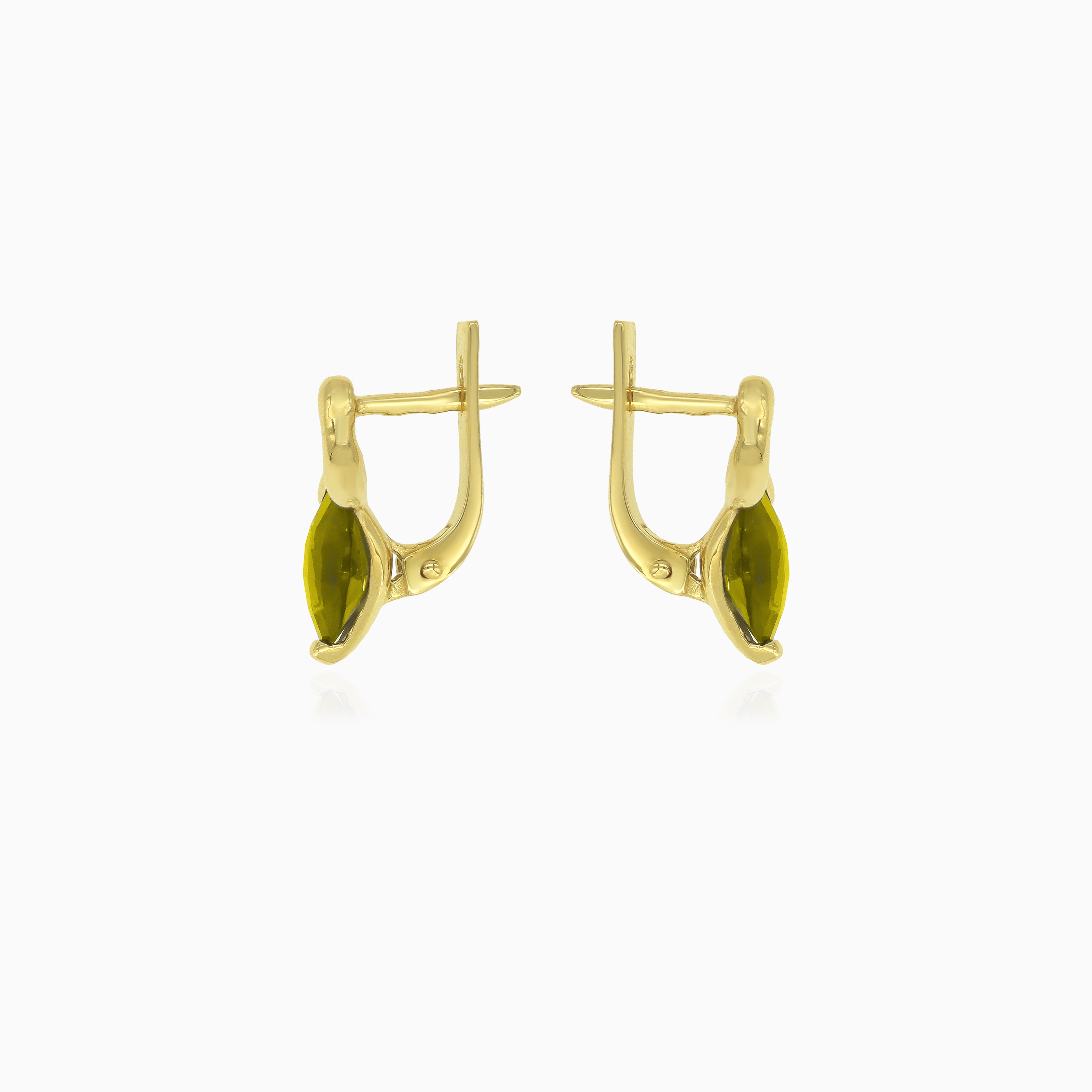 Pendientes colgantes de elegancia con moldavita en oro amarillo