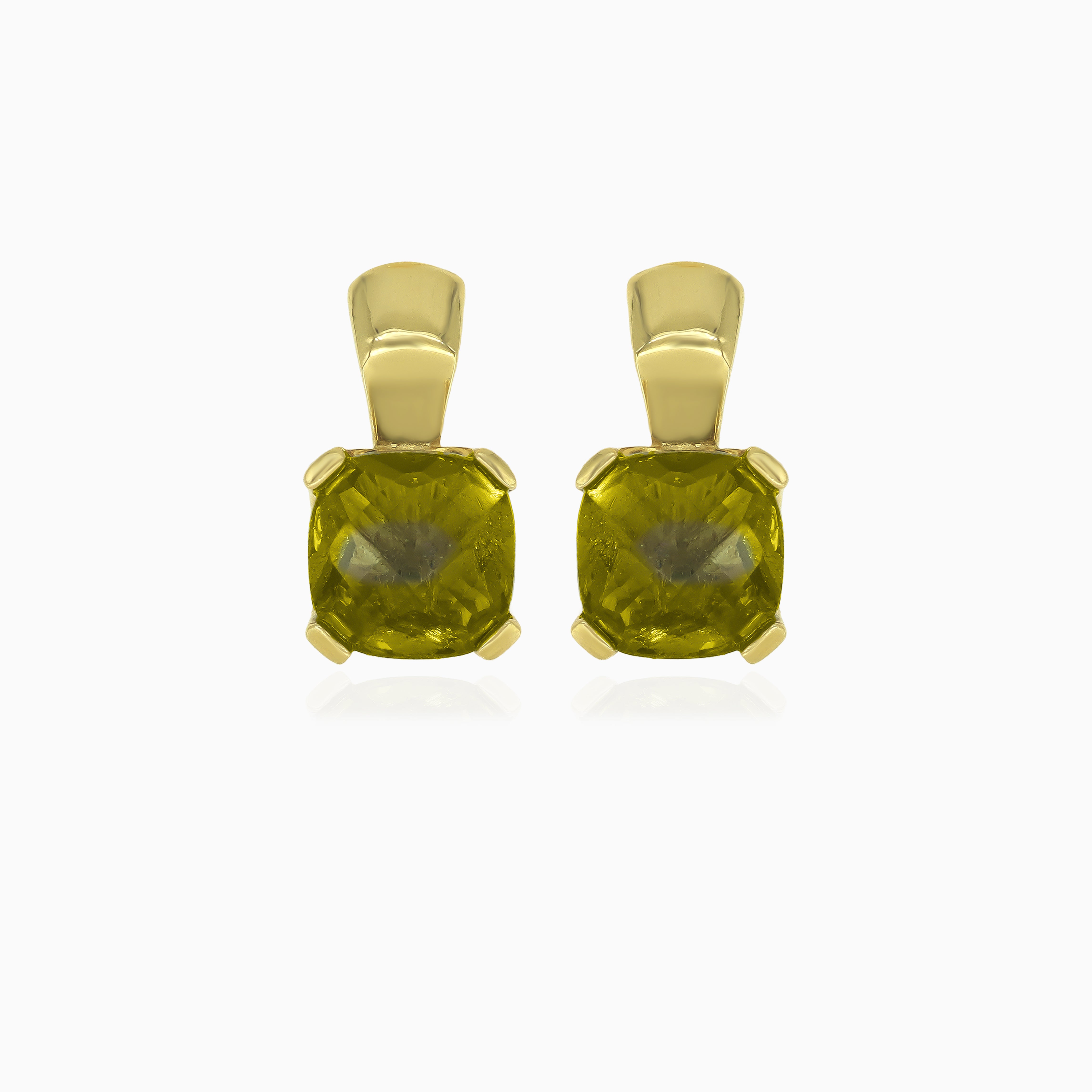 Pendientes colgantes de oro con moldavita talla cojín