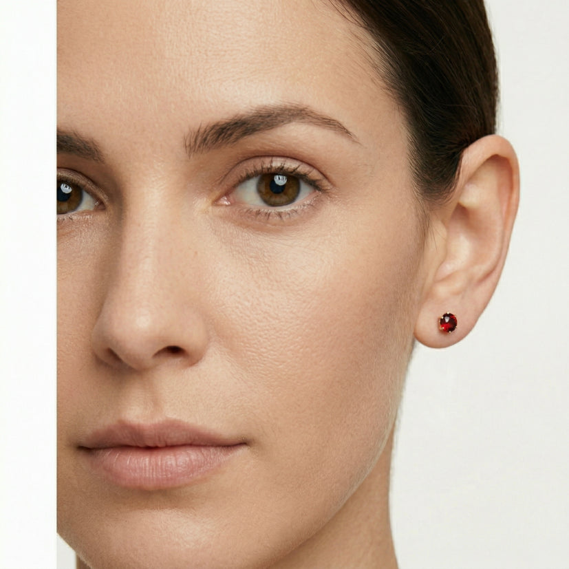 Pendientes de botón de granate sencillos.