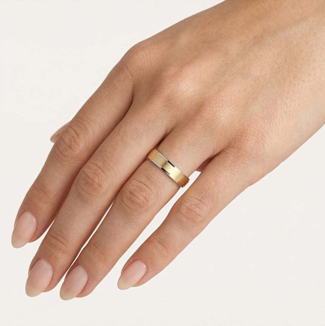 Anillo de boda de dos tonos de oro atemporal.