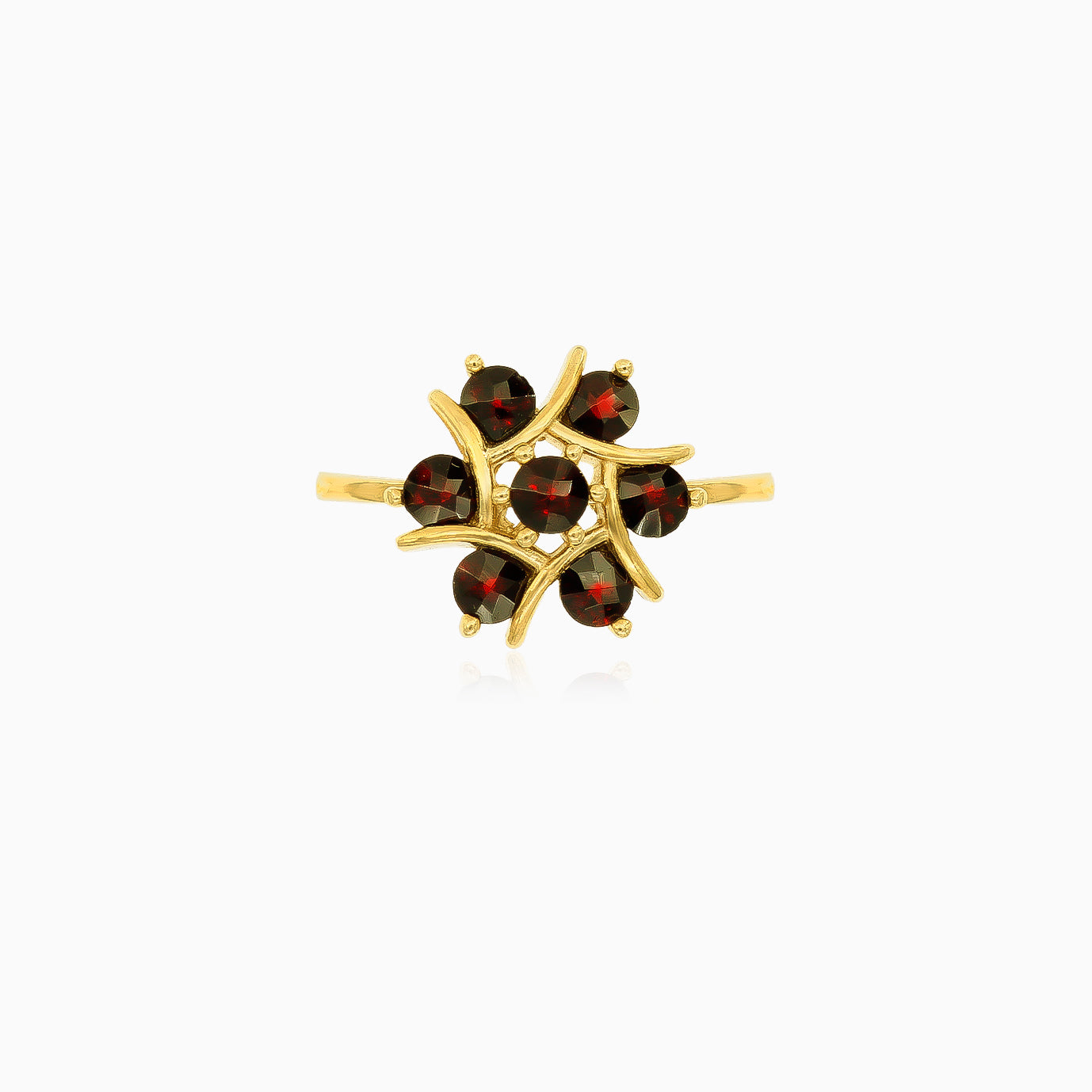 Anillo de oro con granate floral.
