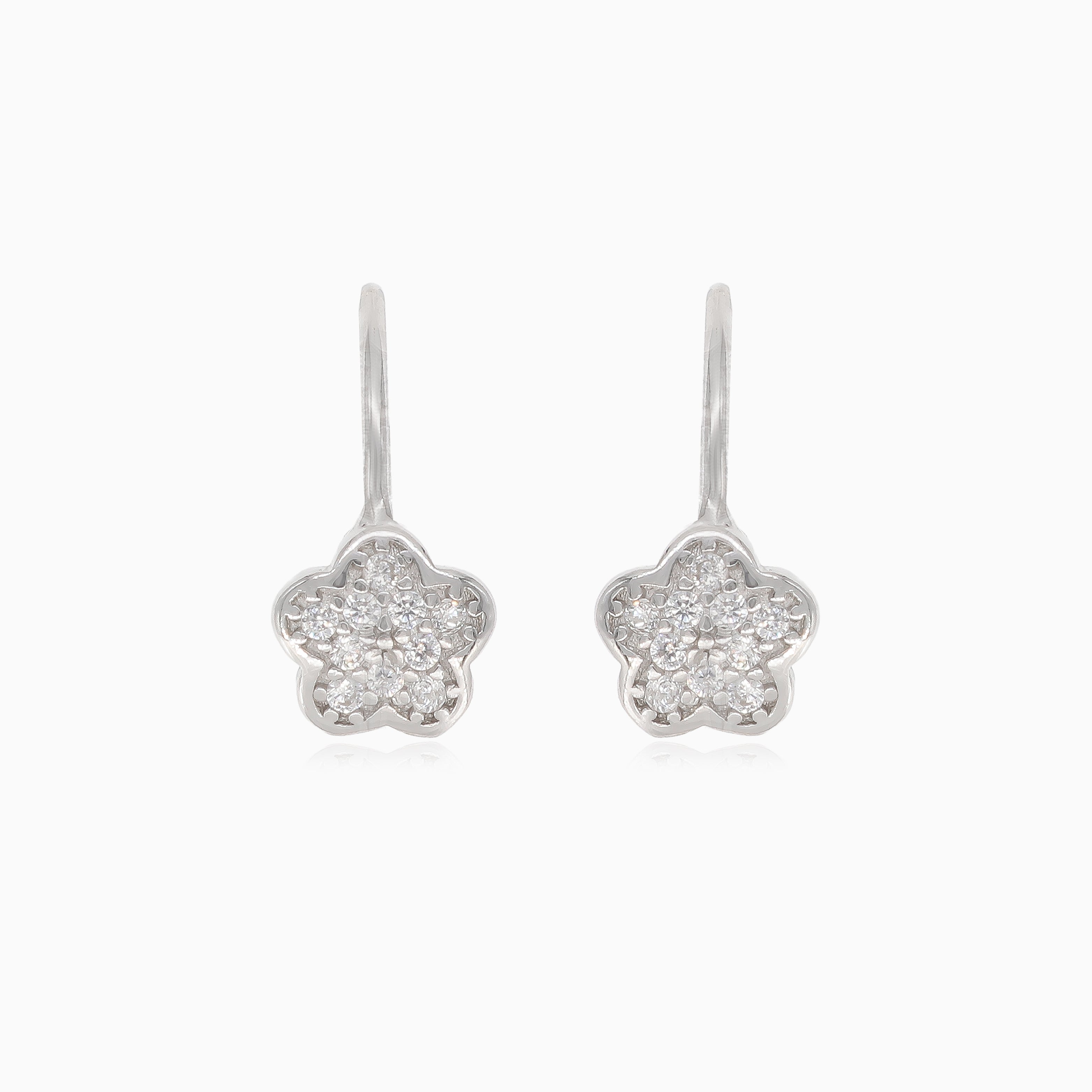 Pendientes colgantes de plata en forma de flor con pequeños circonios cúbicos