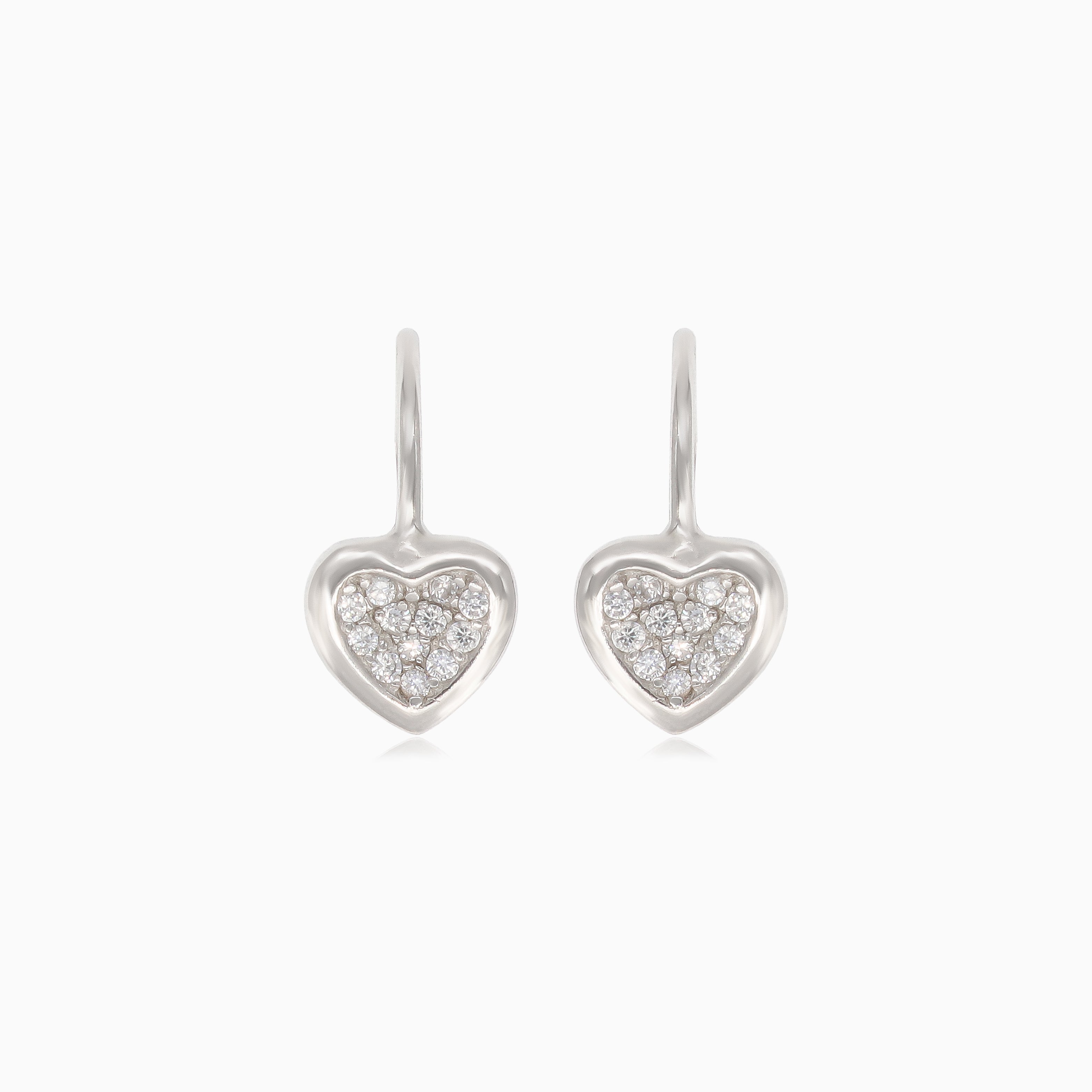 Pendientes de plata con corazón y circonita cúbica en el centro