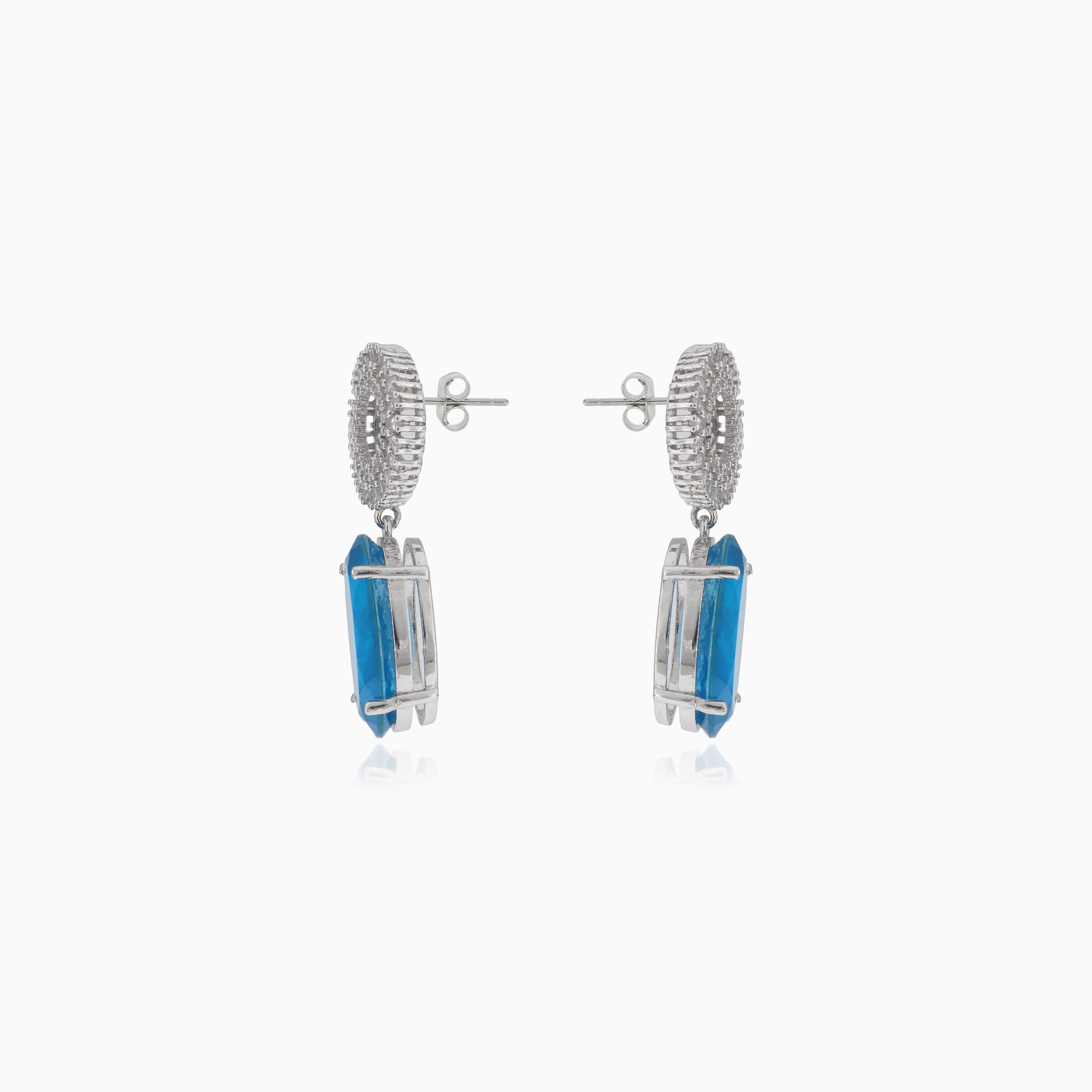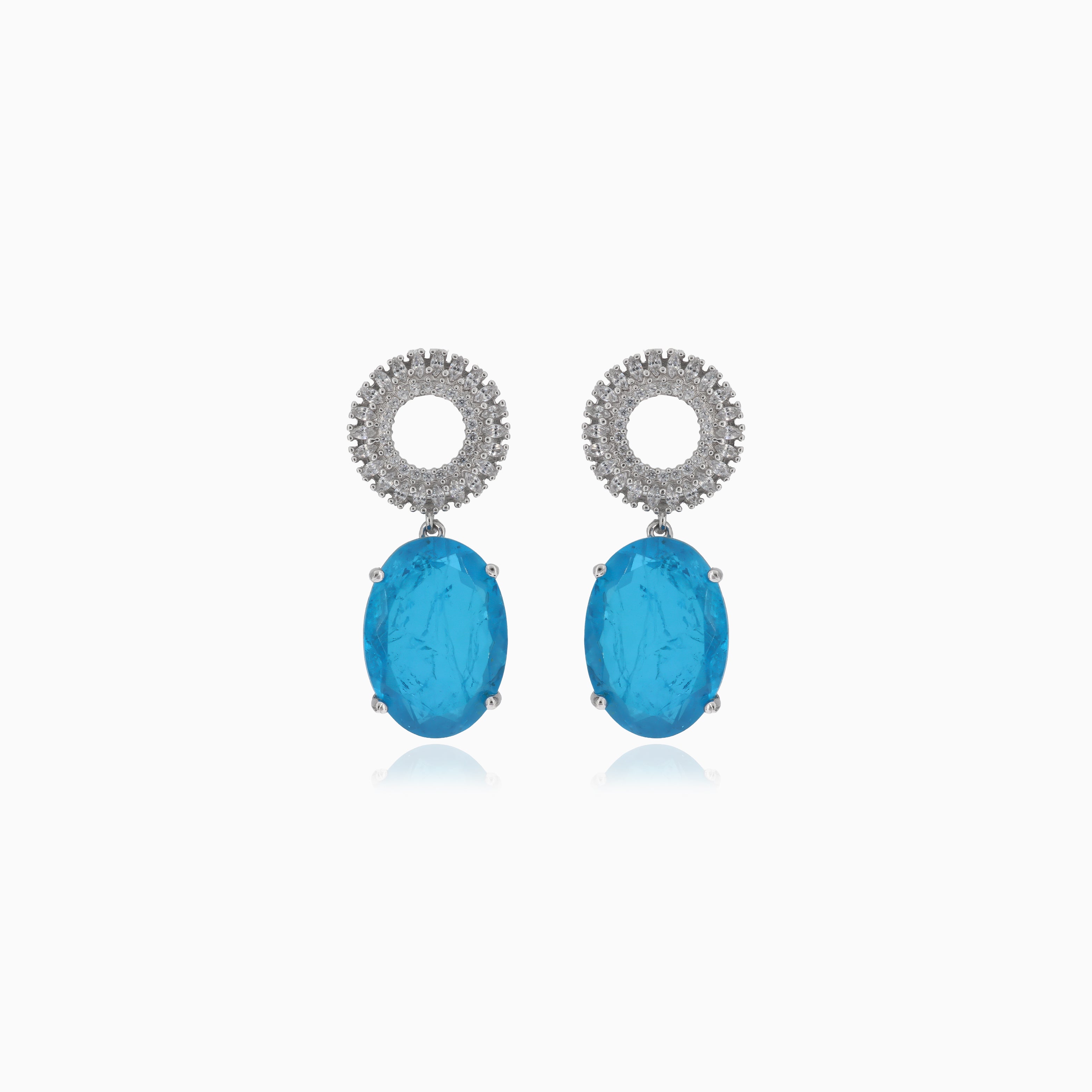 Elegantes pendientes de plata con piedras de turmalina ovaladas enmarcadas por un círculo de brillantes circonitas cúbicas.