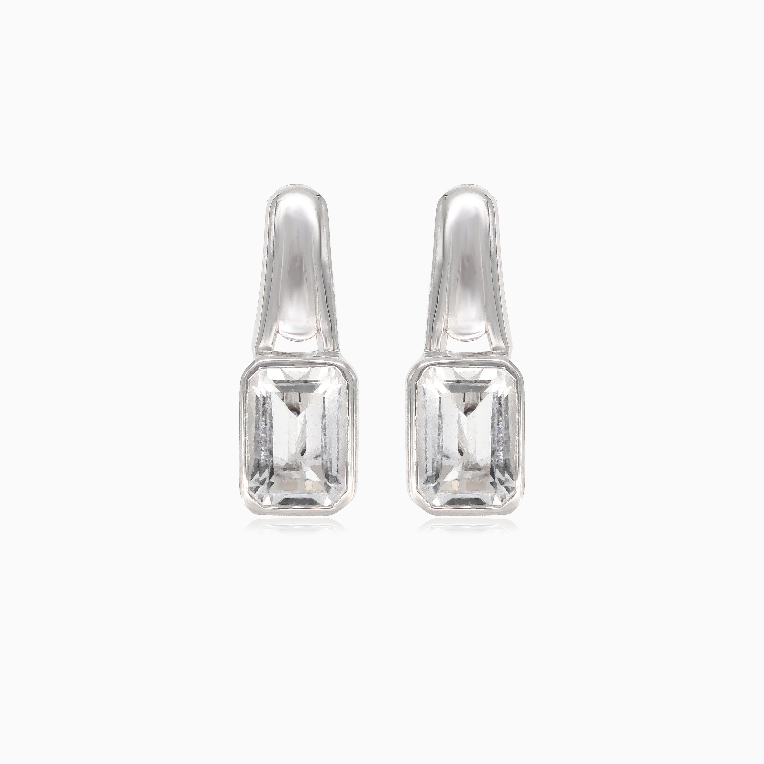 Añade un toque de elegancia a tu conjunto con estos impresionantes pendientes de plata con cristales brillantes, diseñados con cierre de bisagra para un uso fácil y seguro.