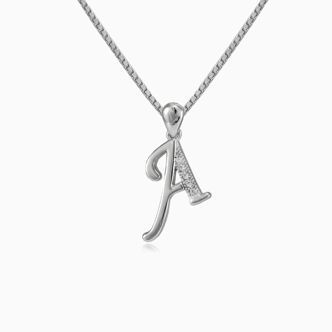 Maravilloso colgante con letra A de plata de ley combinado con circonita cúbica.