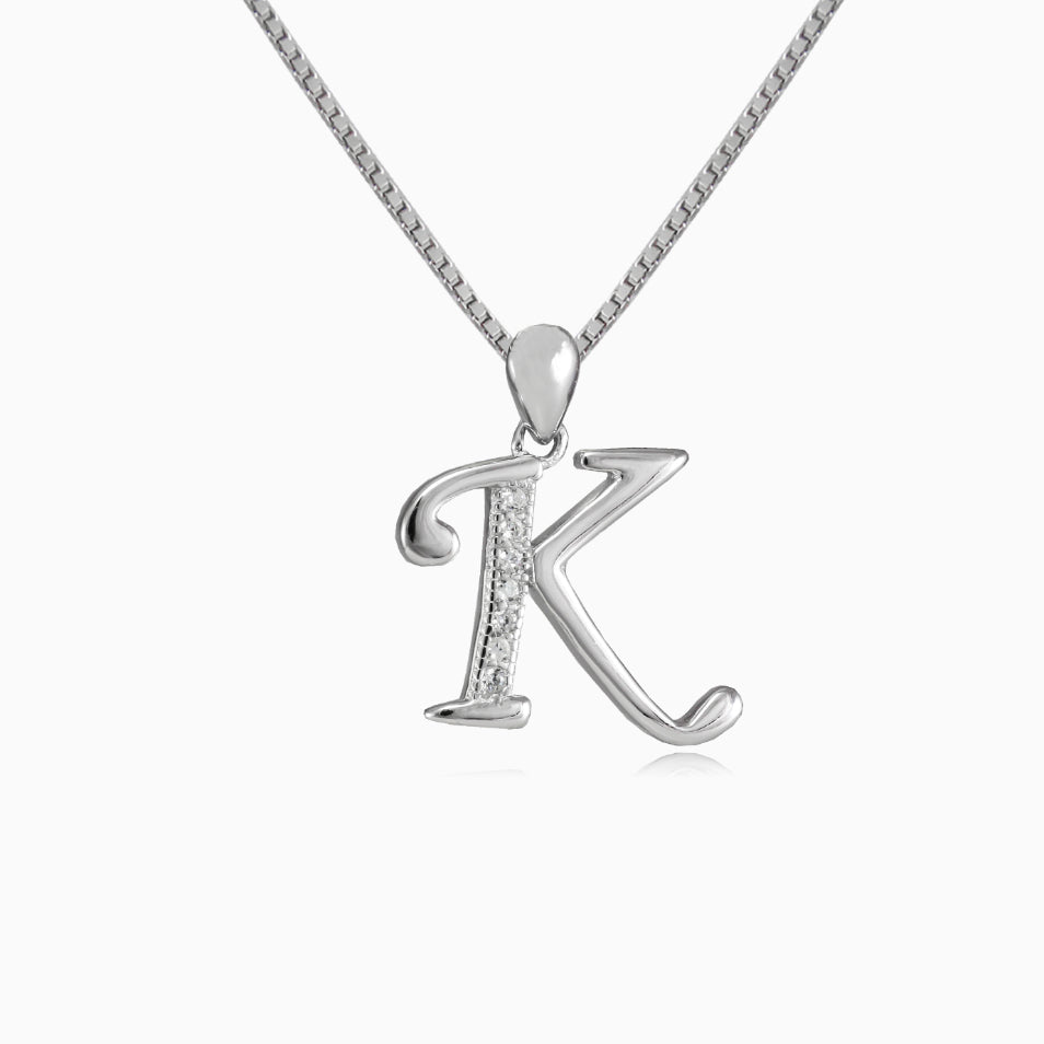 Maravilloso colgante con letra K en plata de ley combinado con circonitas.