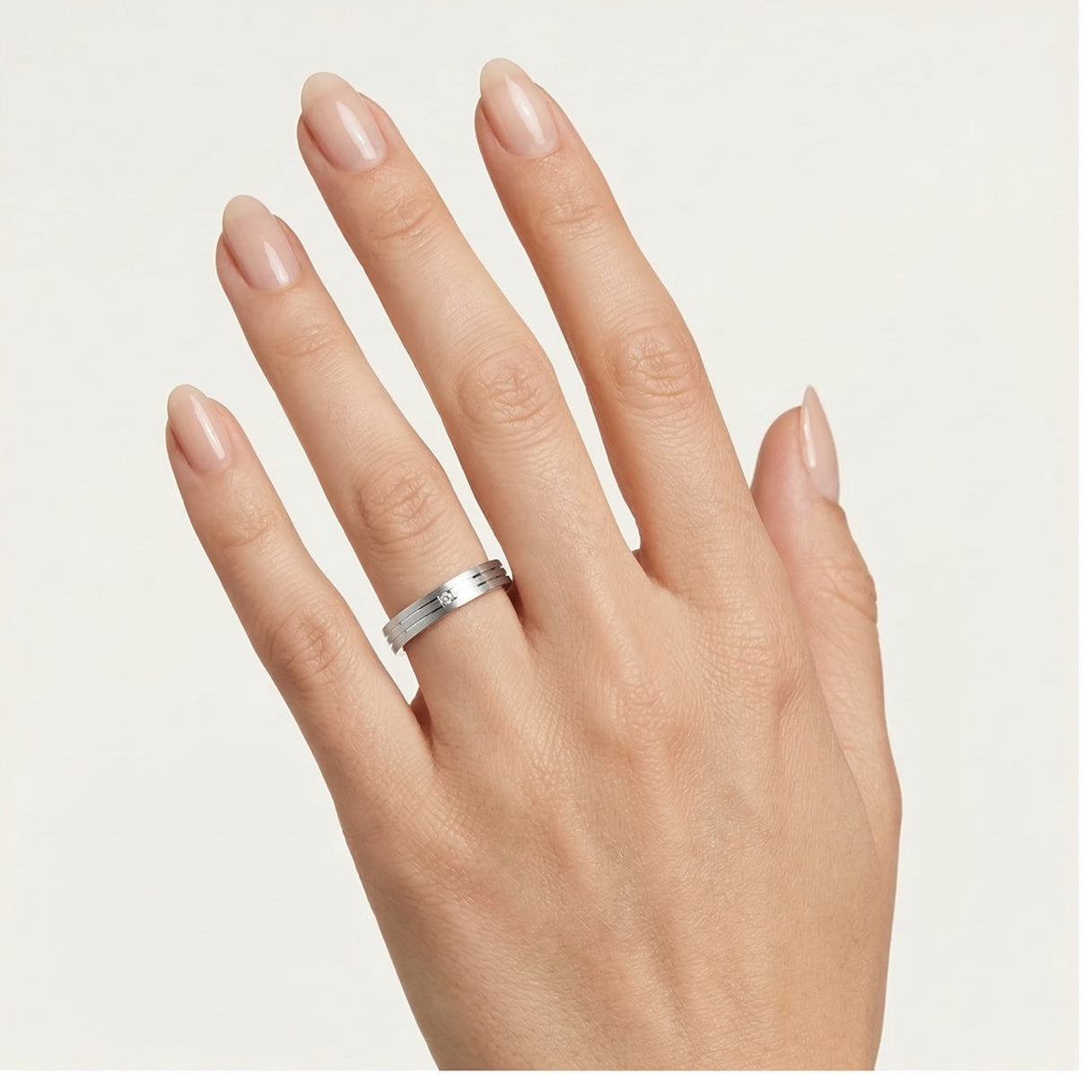 Anillo de boda solitario de oro blanco con líneas