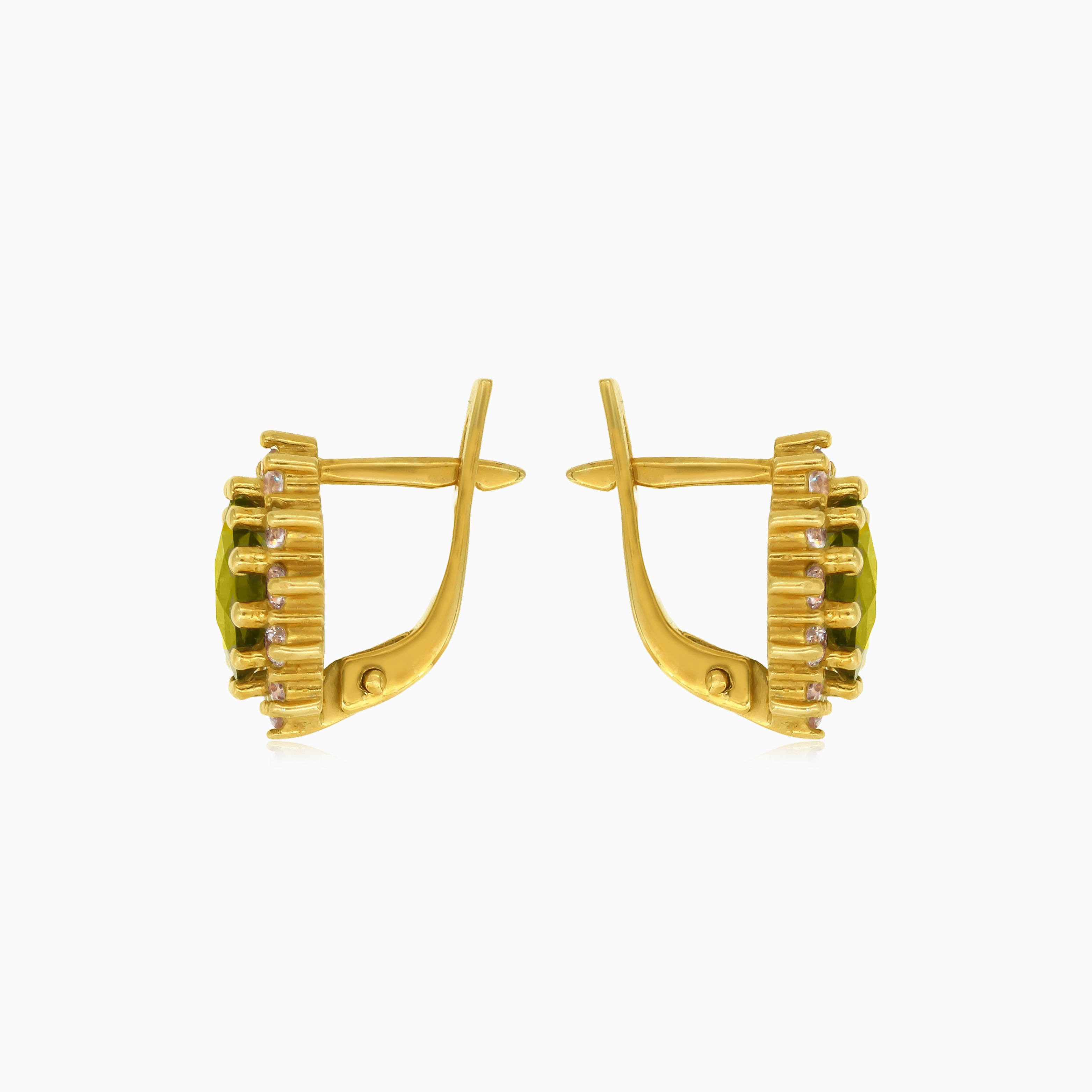 Elegantes pendientes de oro de 14 quilates con moldavita y circonita cúbica