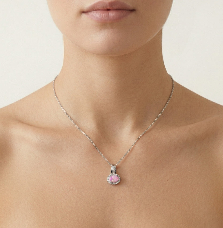Un colgante increíble elaborado en plata de ley combinado con ópalo rosa ovalado y circonita cúbica blanca.
