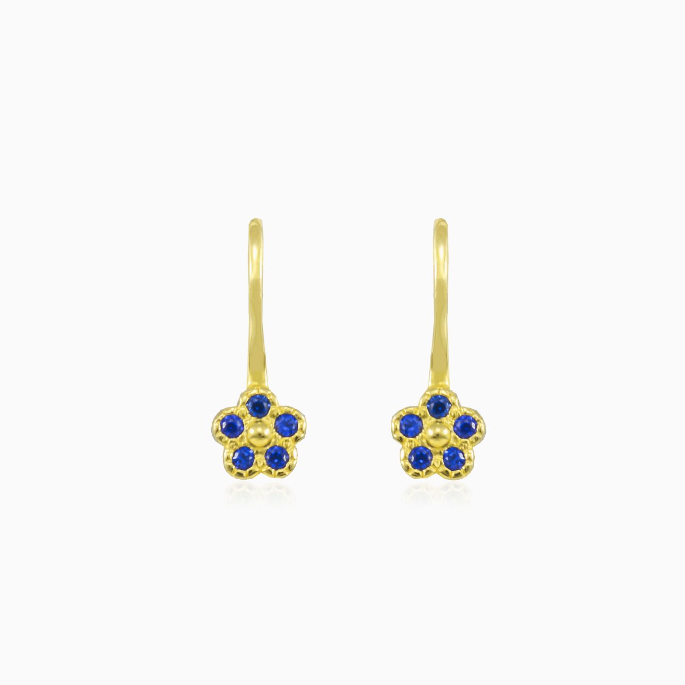 Pendientes de flor azul en oro amarillo