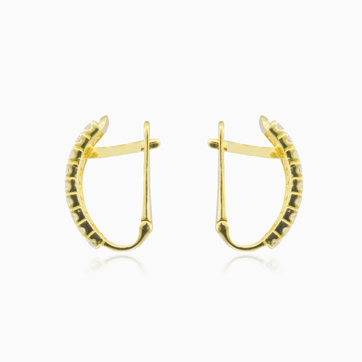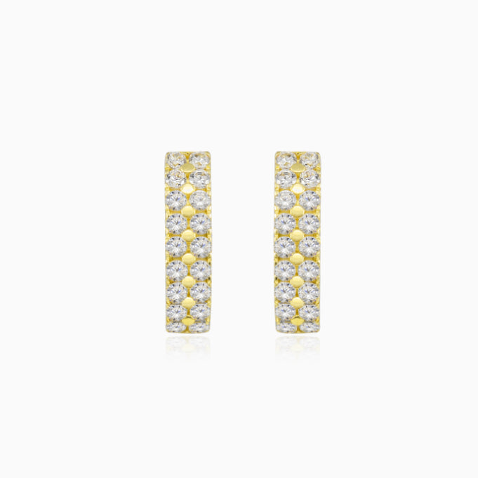 Pendientes casuales de oro amarillo de 14 quilates decorados con dos líneas de circonia cúbica.