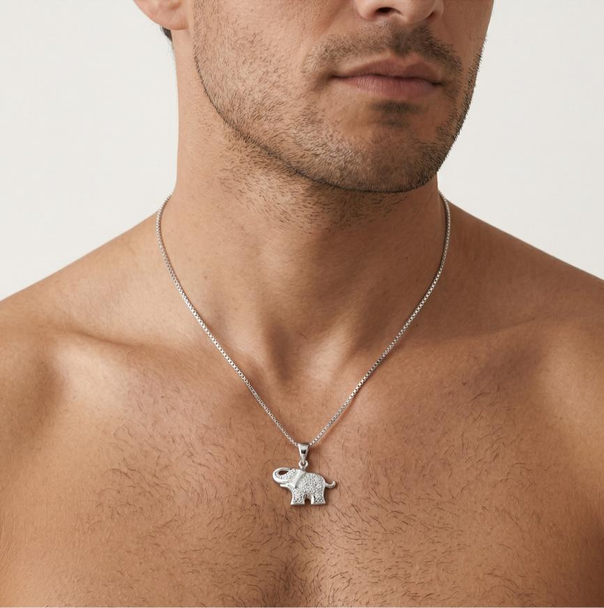 Se dice que llevar joyas de elefante trae suerte. Este hermoso collar está hecho de plata de ley combinado con circonitas cúbicas.