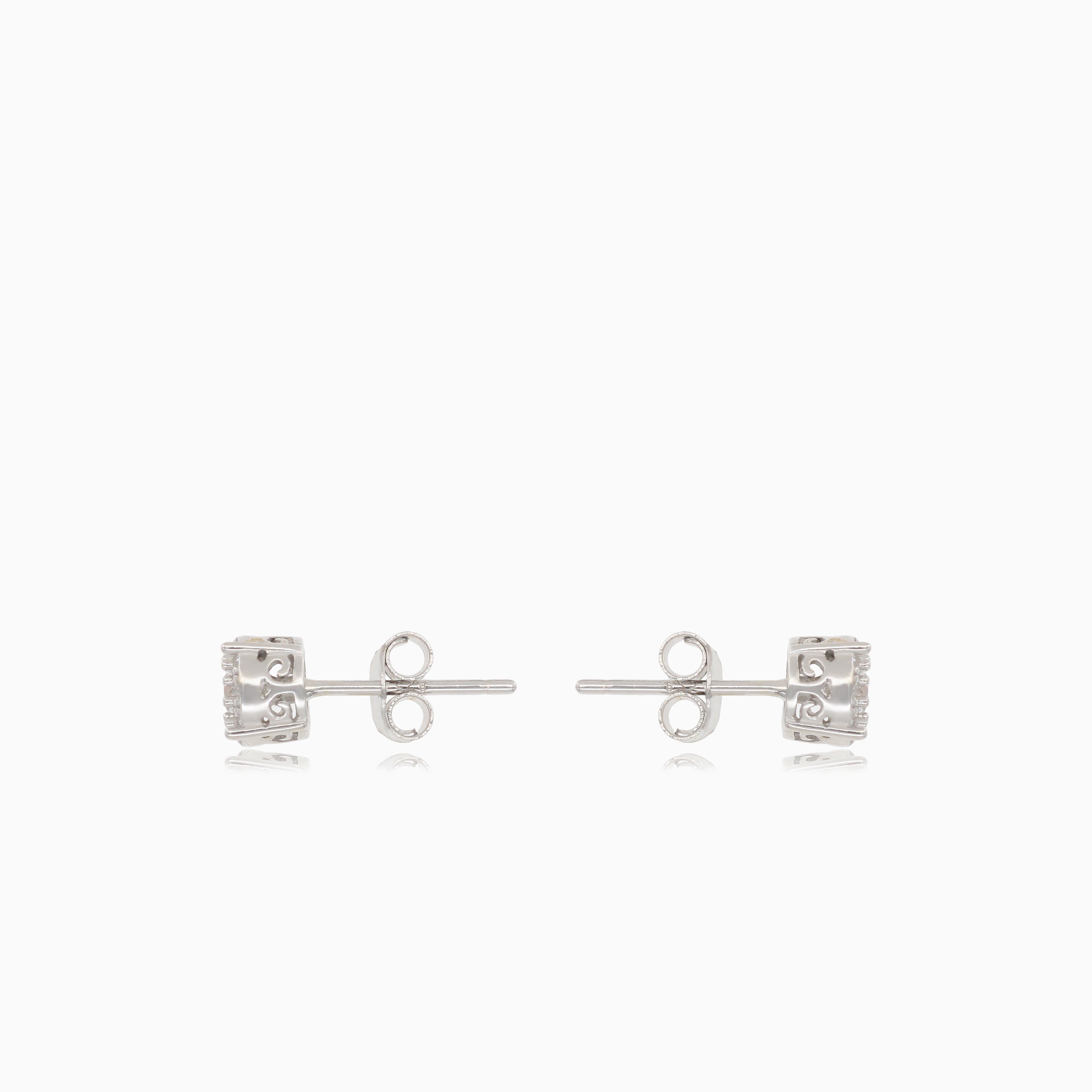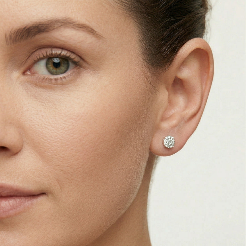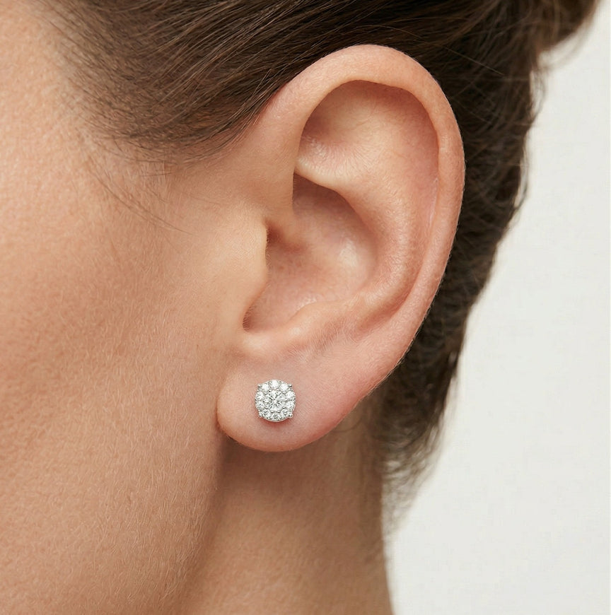 Elegantes pendientes de botón redondos de plata con deslumbrantes circonitas cúbicas fijadas en un clásico engaste de 4 garras, perfectos para añadir brillo a cualquier conjunto.