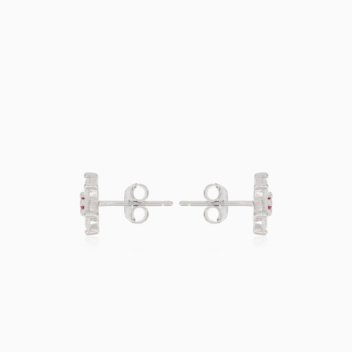 Añade un toque de elegancia a tu look con nuestros pendientes de plata con circonia cúbica y rubí sintético en corte escalonado fino redondo. Estos pendientes están asegurados con un cierre tipo pousette y engaste de garra, y presentan un elegante diseño floral.