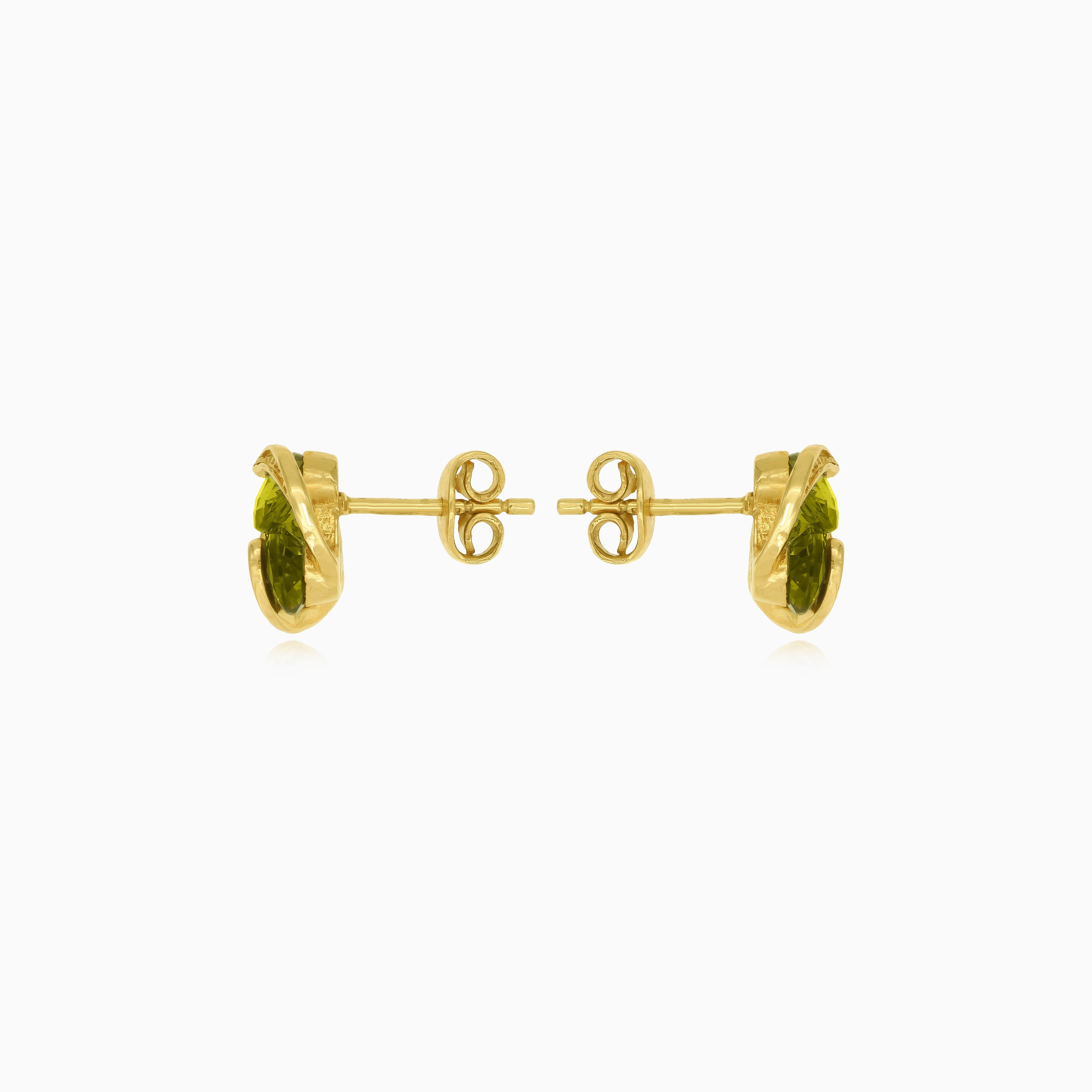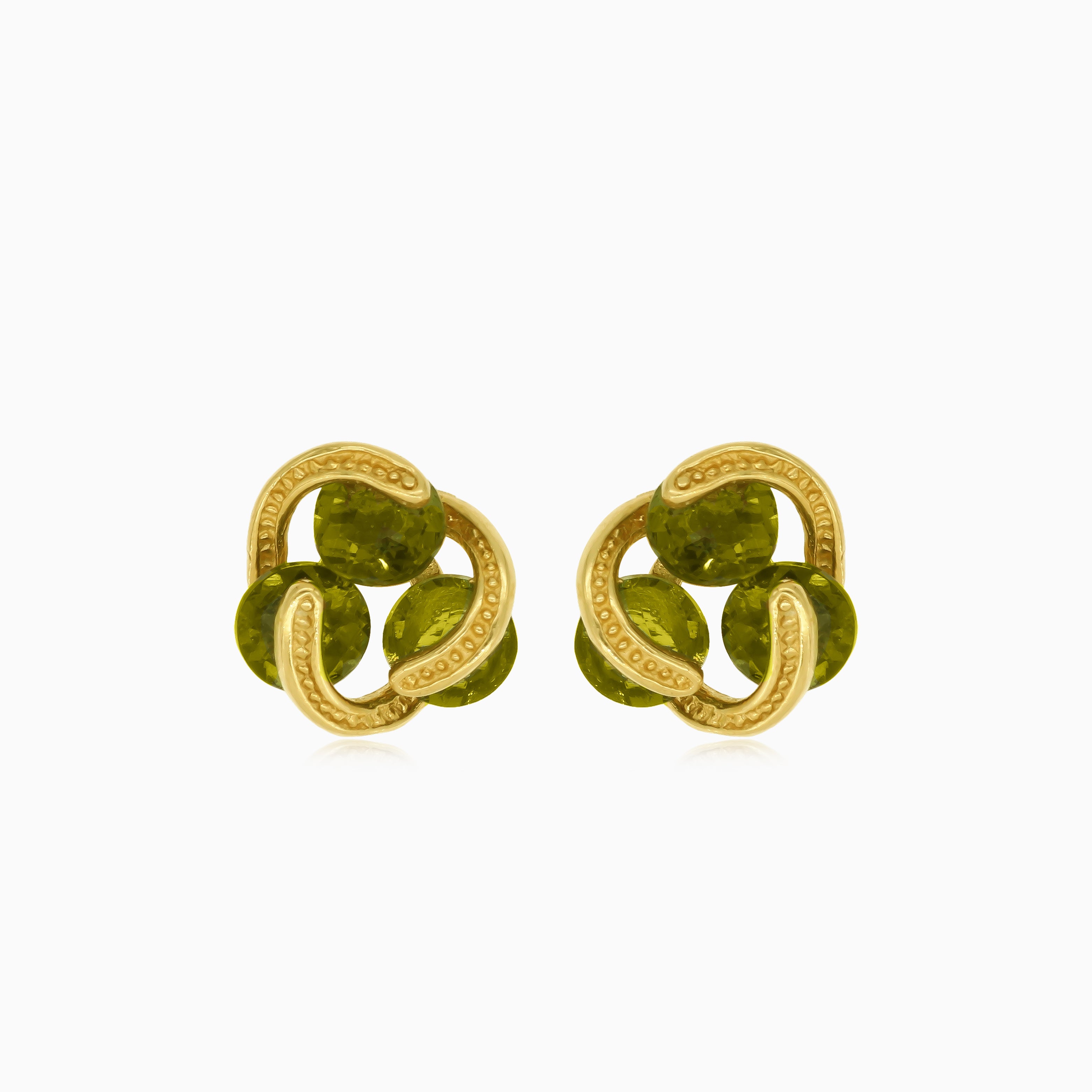 Eleva tu estilo con estos exquisitos pendientes de oro amarillo de 14 quilates, que presentan piedras de moldavita en talla redonda de paso fino. Las gemas verdes, aseguradas con cierre tipo pousette y engastadas en tensión, crean un accesorio cautivador y elegante.