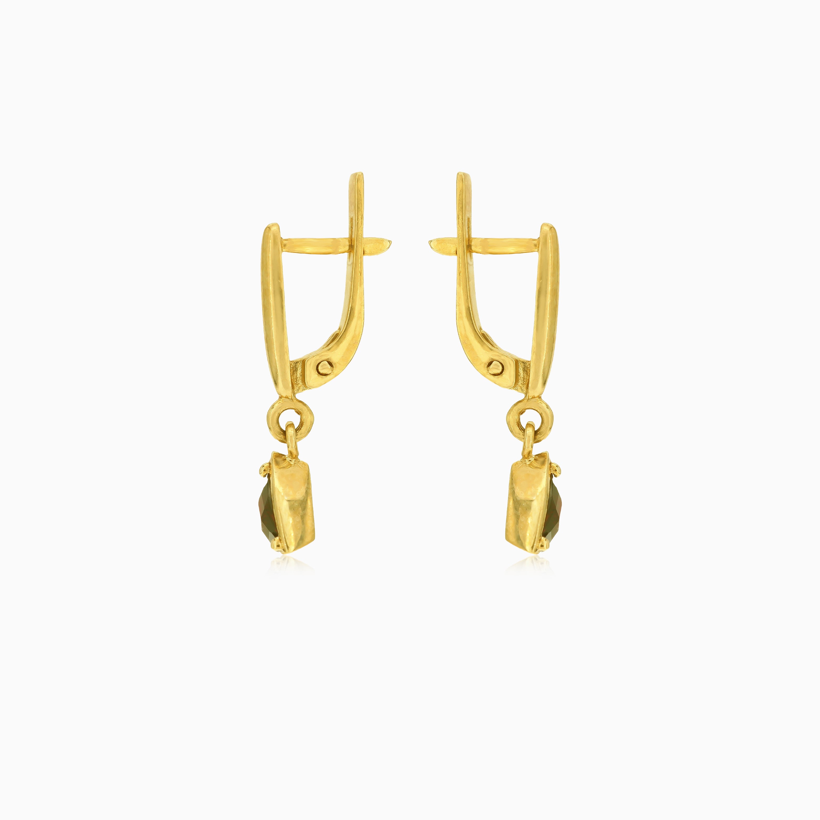 Realza tu atractivo con estos pendientes colgantes de oro amarillo de 14 kt, que presentan un granate de corte trilión en un hipnotizante corte escalonado fino. El cierre seguro de bisagra y el delicado engaste de 3 garras hacen de estos pendientes una combinación perfecta de estilo y sofisticación.