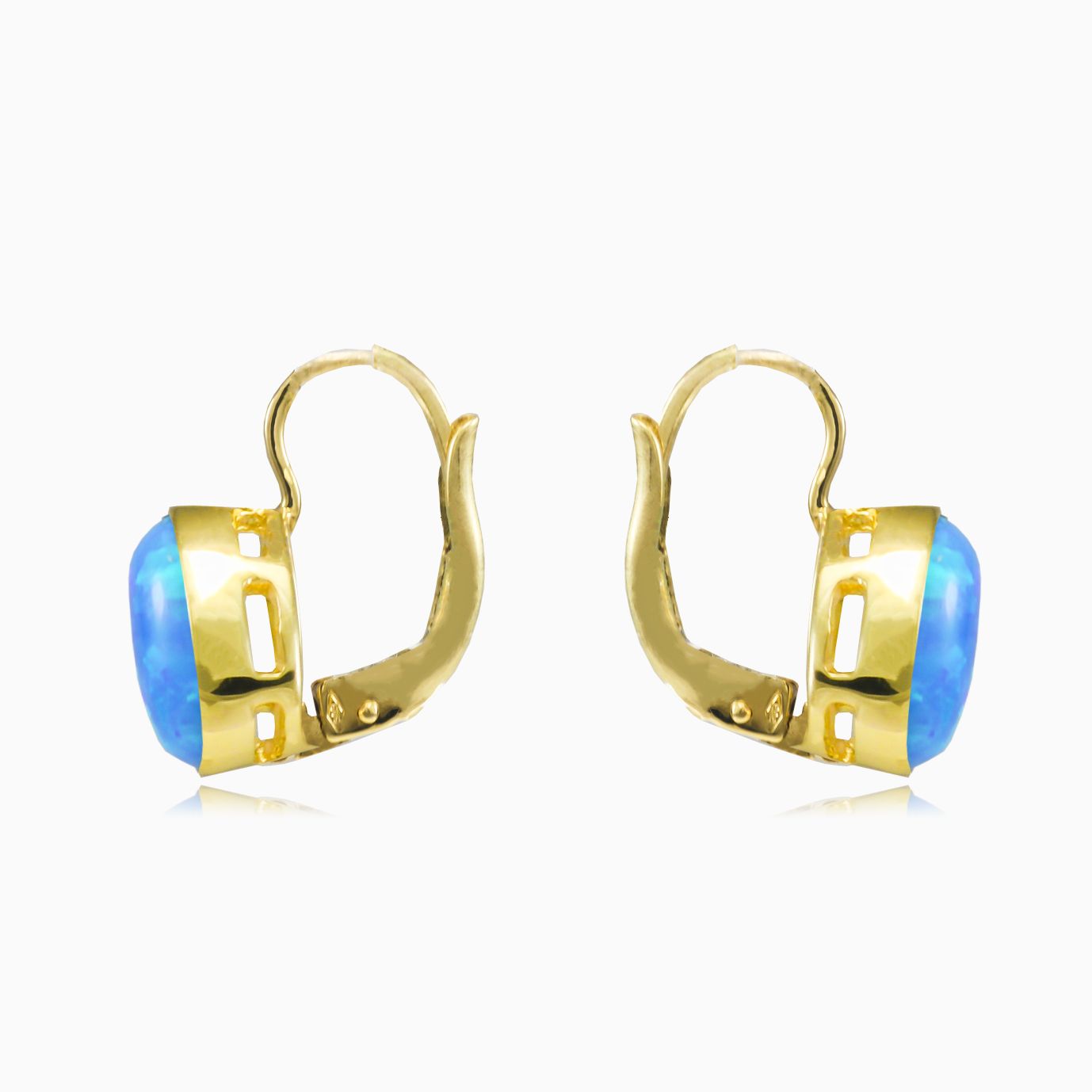 Pendientes de oro con ópalo azul sencillo