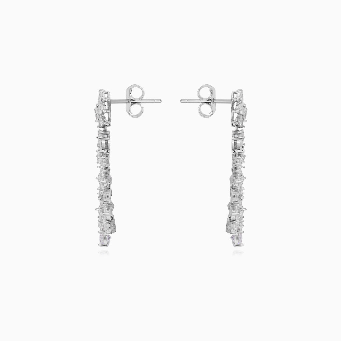 Elegantes pendientes colgantes de plata de ley con circonita cúbica en formas de pera, óvalo y marquesa en corte fino. El diseño brillante está asegurado con engaste de garra y cierre pousette, convirtiendo estos pendientes en una opción atemporal para eventos formales y sofisticación diaria.