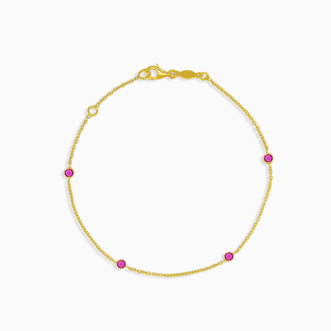 Esta exquisita pulsera de oro amarillo de 14kt presenta cuatro rubíes sintéticos de corte brillante que realzan su originalidad y estilo. La pulsera se asegura con un cierre de langosta para un uso conveniente.