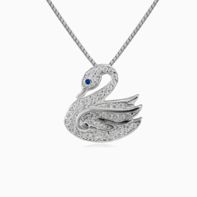 Colgante de cisne de ojos azules hecho de plata de ley, decorado con circonitas cúbicas y zafiro azul.