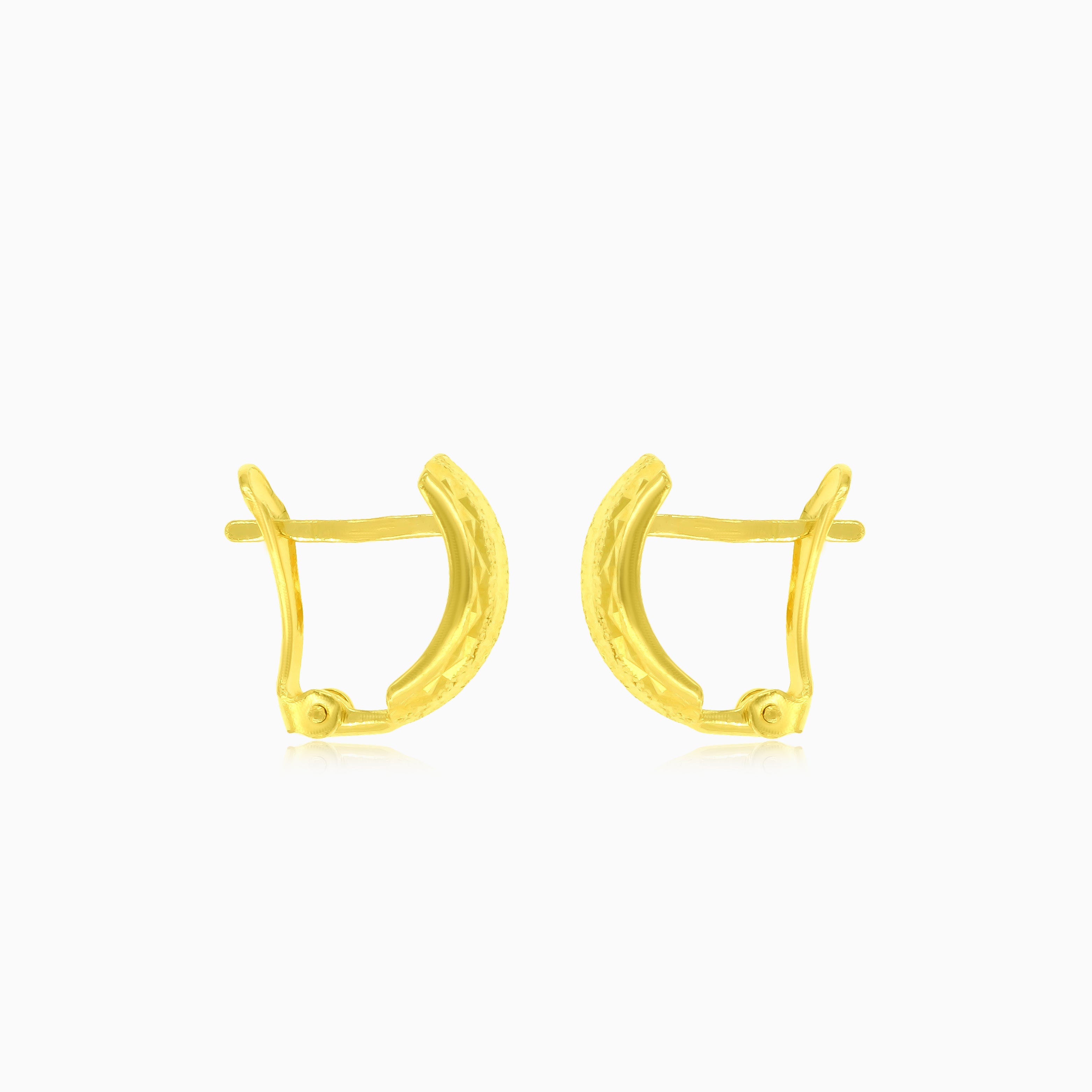 Pendientes elaborados con detalle en oro amarillo de 14 kt con cierre de bisagra seguro.