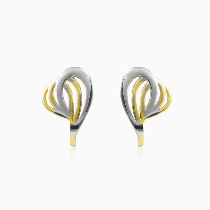 Pendientes favorecedores elaborados en oro amarillo y blanco de 14 kt con líneas abstractas.