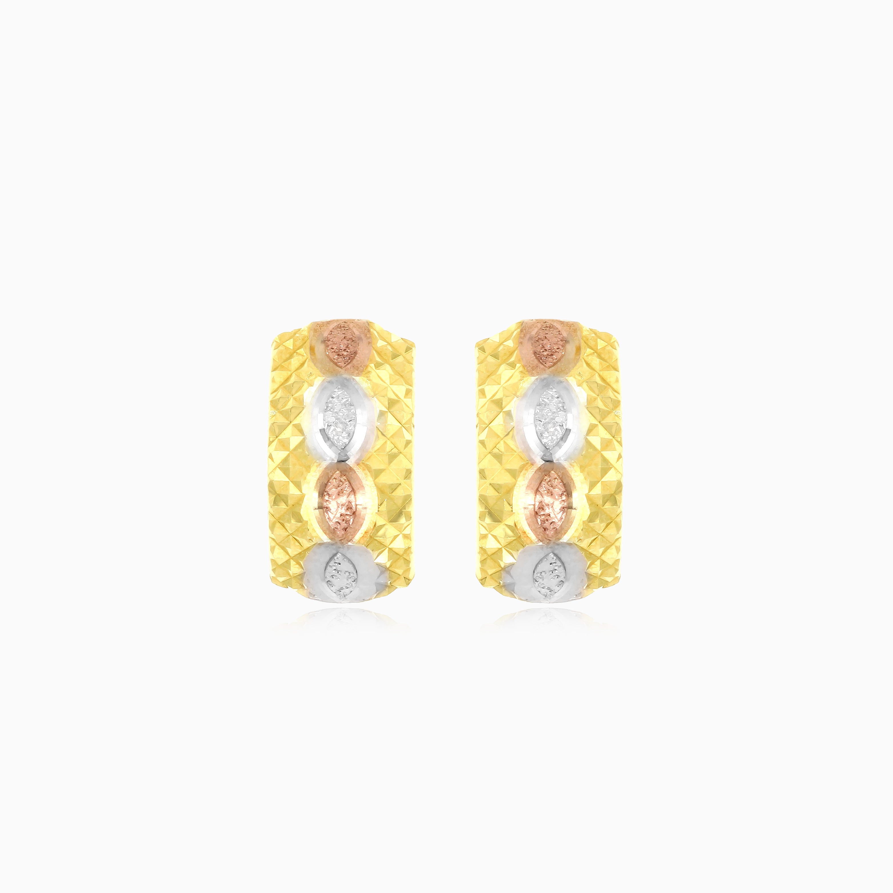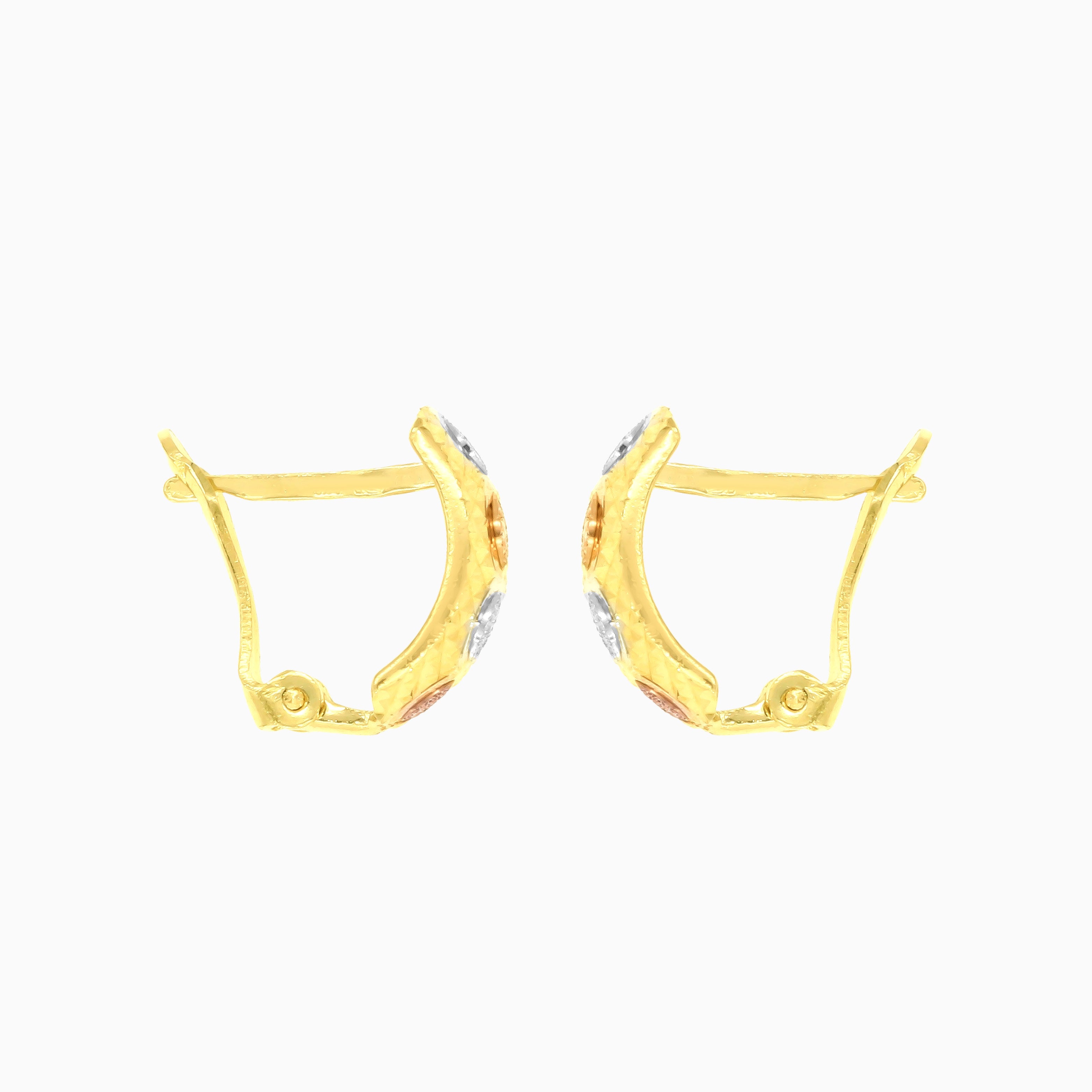Pendientes de mujer con cierre de bisagra en oro amarillo, blanco y rosa de 14 quilates.