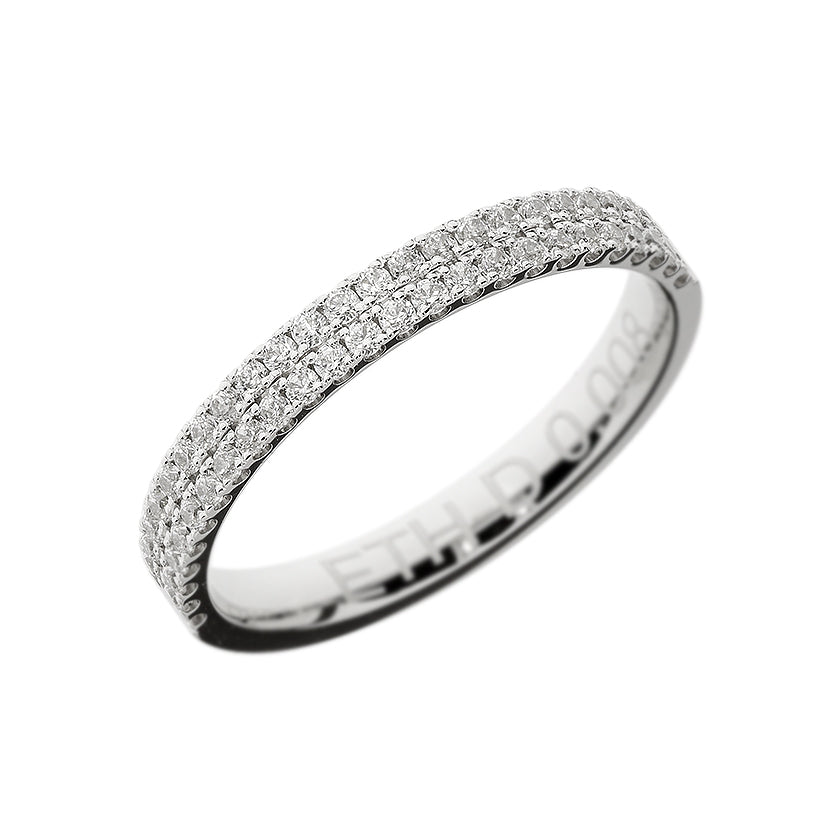Este elegante anillo de boda para mujer está hecho de oro blanco de 14 kt y presenta un diseño atemporal. Está adornado con dos hileras de piedras redondas de talla escalonada fina de 0,368 ct, disponibles en circonita cúbica o diamantes. Las piedras están engastadas en garra, lo que aporta un brillo deslumbrante y sofisticado.