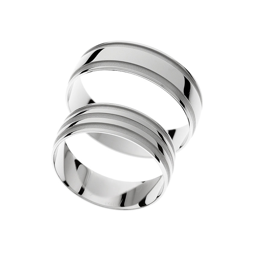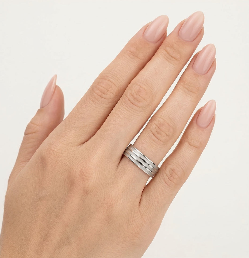 Anillo de boda de oro blanco pulido con múltiples líneas