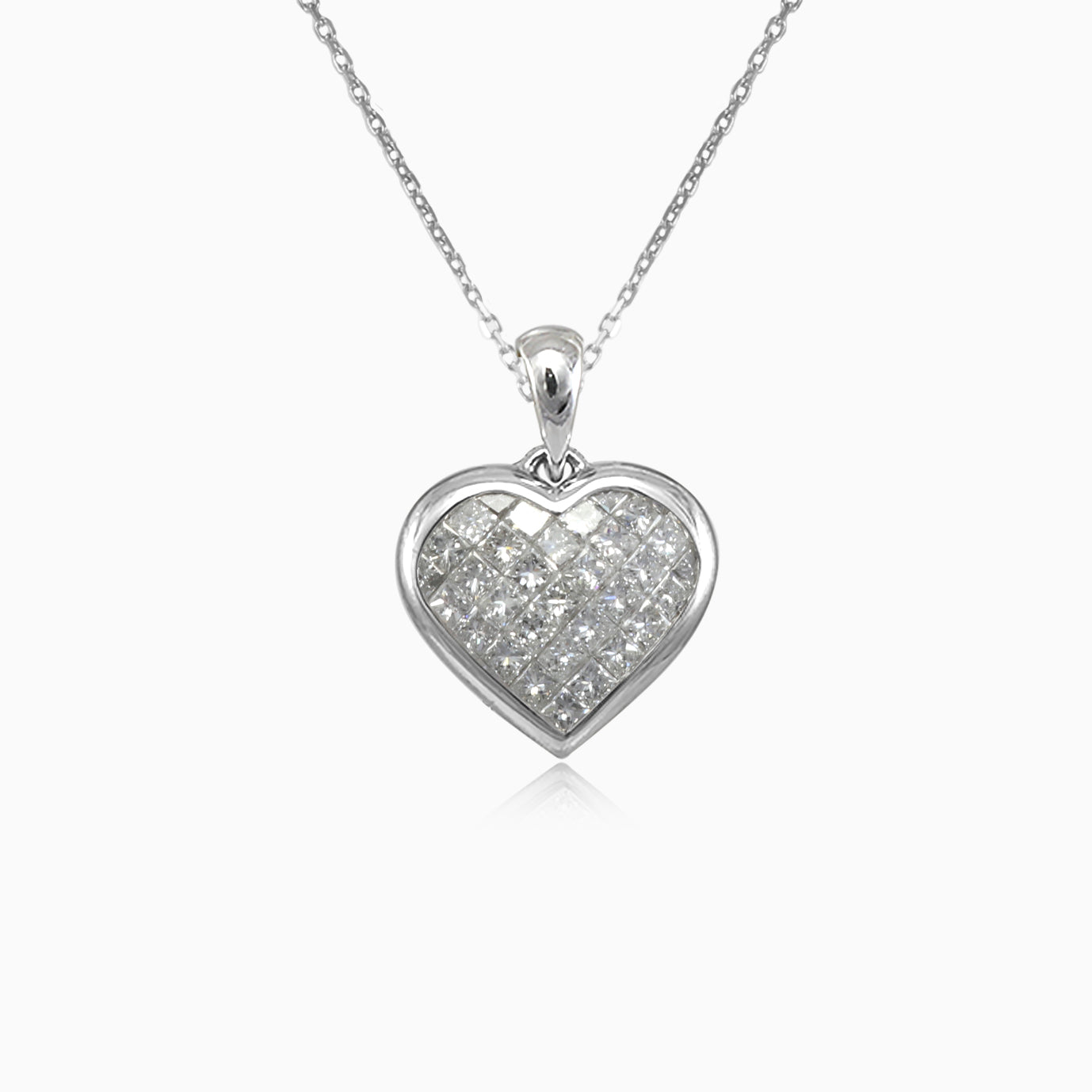 Confeccionado en oro blanco de 18 quilates, este colgante único destaca su característica principal: diamantes de corte princesa que pesan 1,19 ct. Los diamantes tienen un color GH y una claridad VS1.