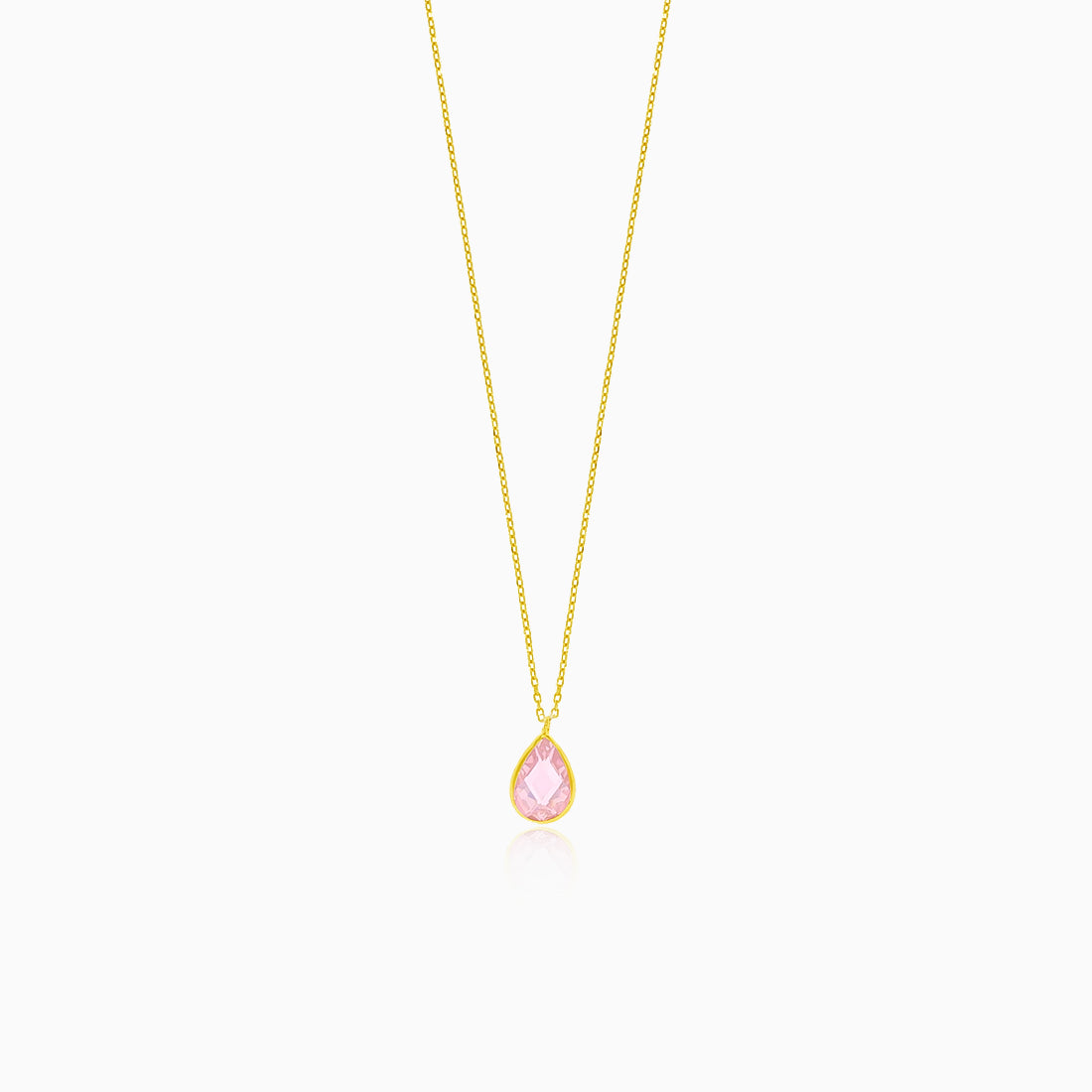 Collar fino de oro con forma de gota y cuarzo rosa