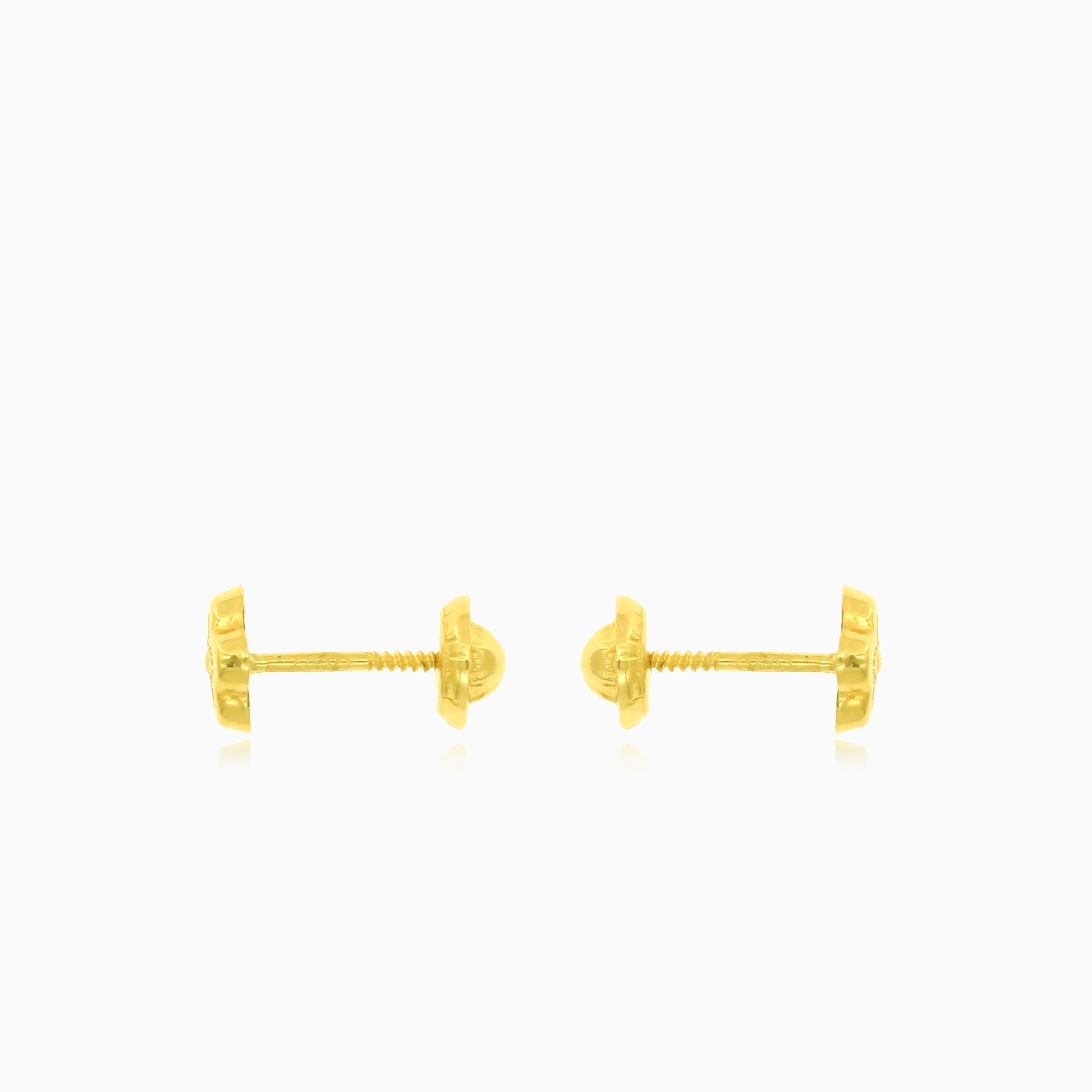 Boucles d'oreilles pour bébé en or jaune avec fleurs en zirconium cubique et fermeture à vis