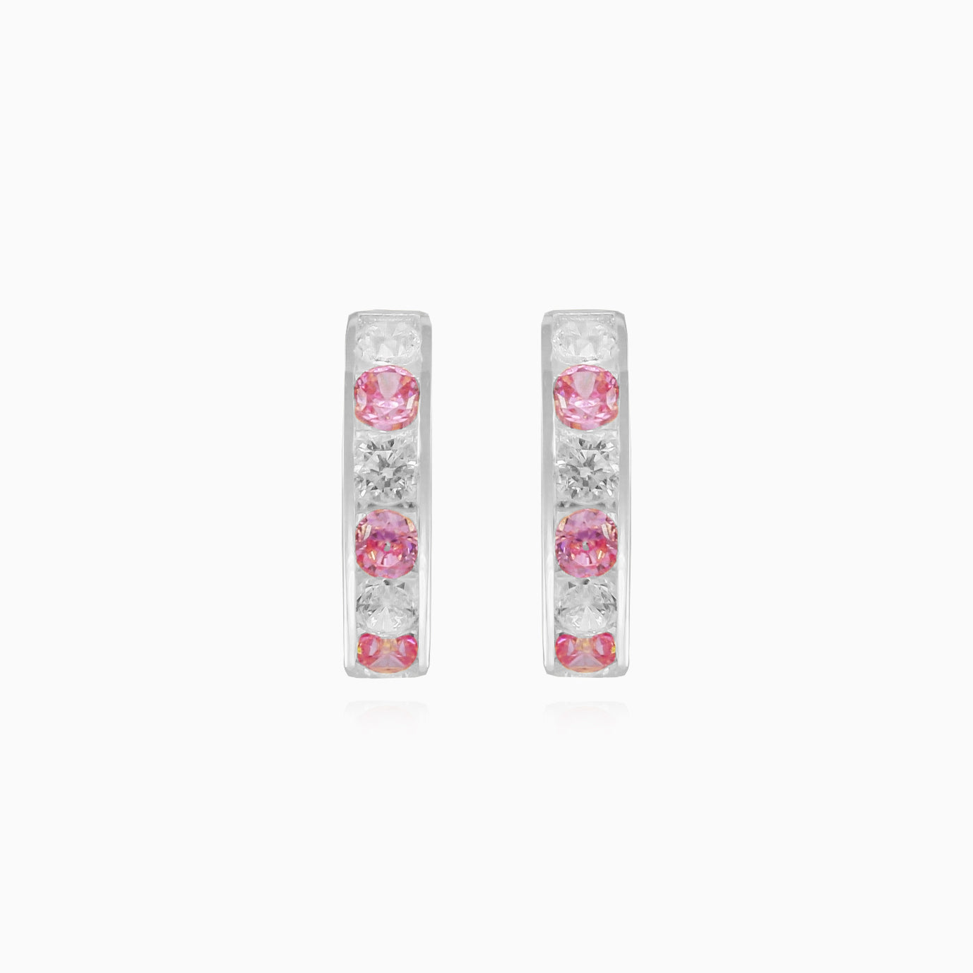 Boucles d’oreilles créoles élégantes pour femme en or blanc 14 carats, ornées de quartz rose taille escalier fine ronde associée à des zircons cubiques étincelants. Conçues avec un fermoir huggie sécurisé et un sertissage en griffes, ces boucles offrent un éclat raffiné pour tous les jours ou les occasions spéciales.